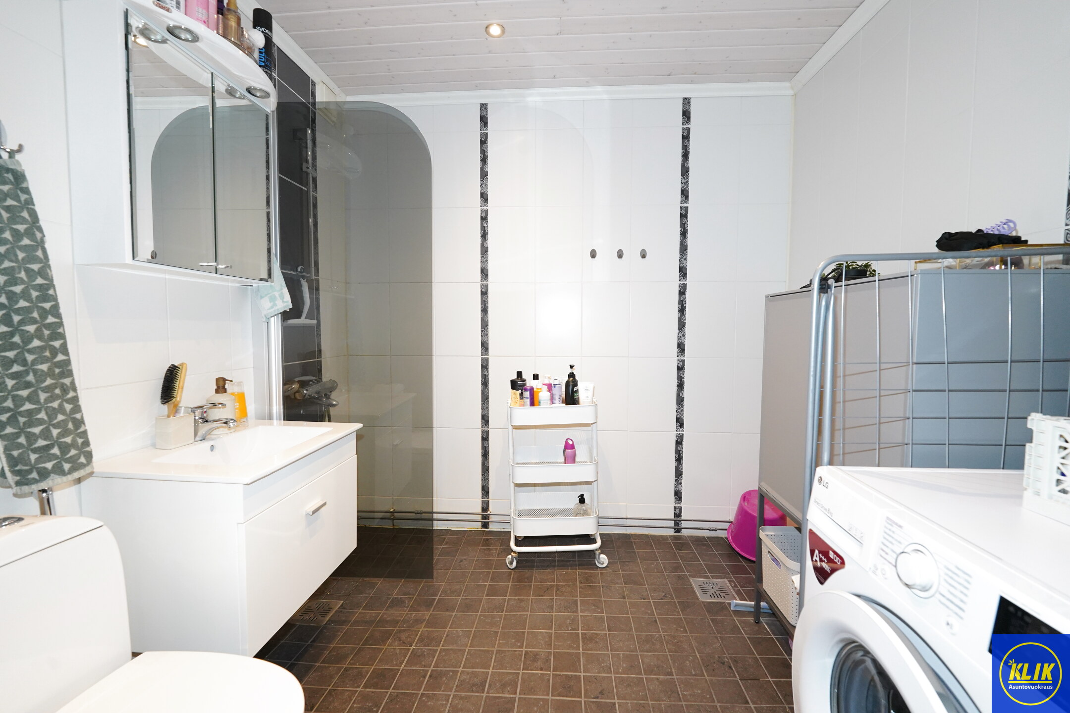 laattalattia; laattaseinä, , allaskaappi; peilikaappi, suihku; suihkuseinä, , pesukonevalmius,