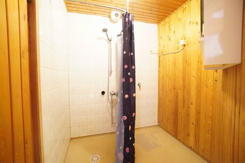muovimatto; laattaseinä, myös erillinen WC, suihku, pesukonevalmius, sauna