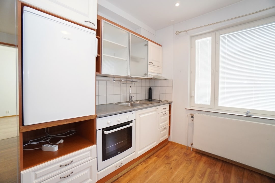 avokeittiö, laminaattitasot keittiössä, keraaminen- tai induktioliesi; liesituuletin, jääkaappi pakastelokerolla,