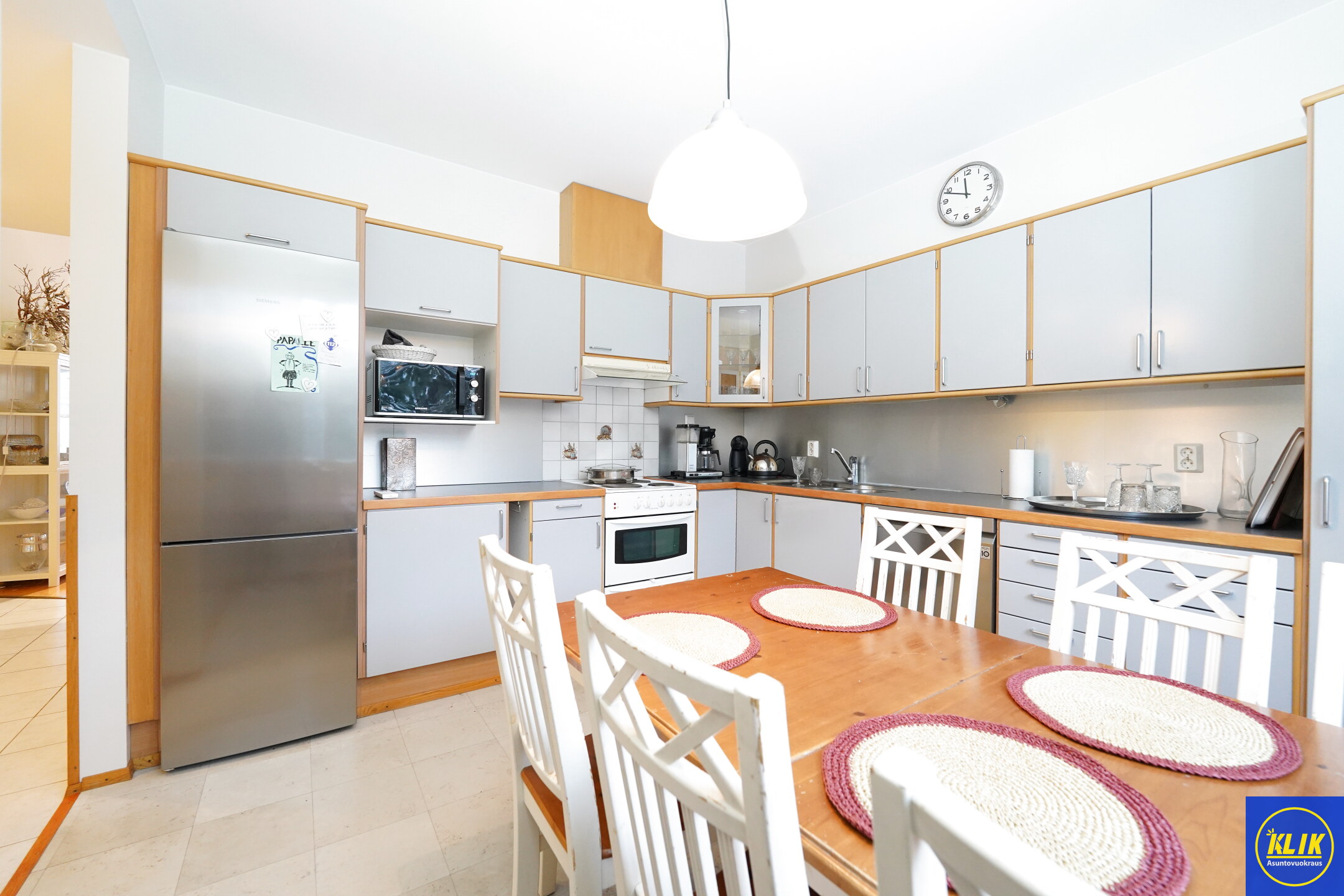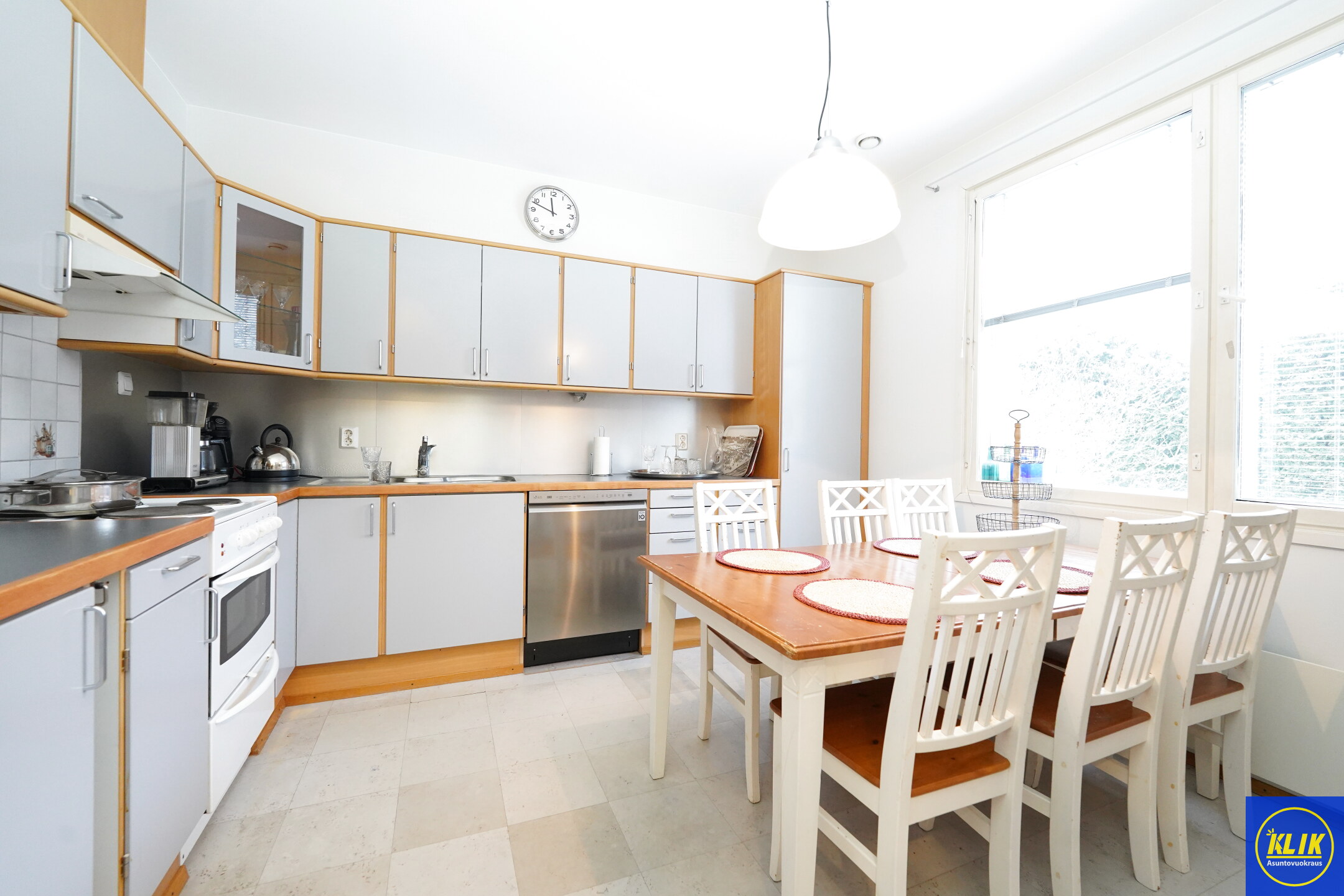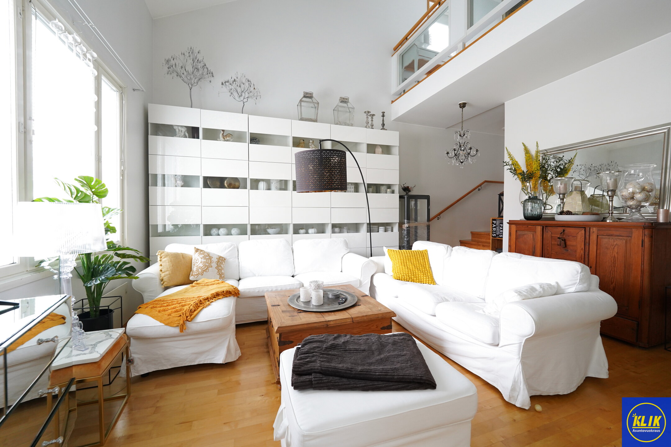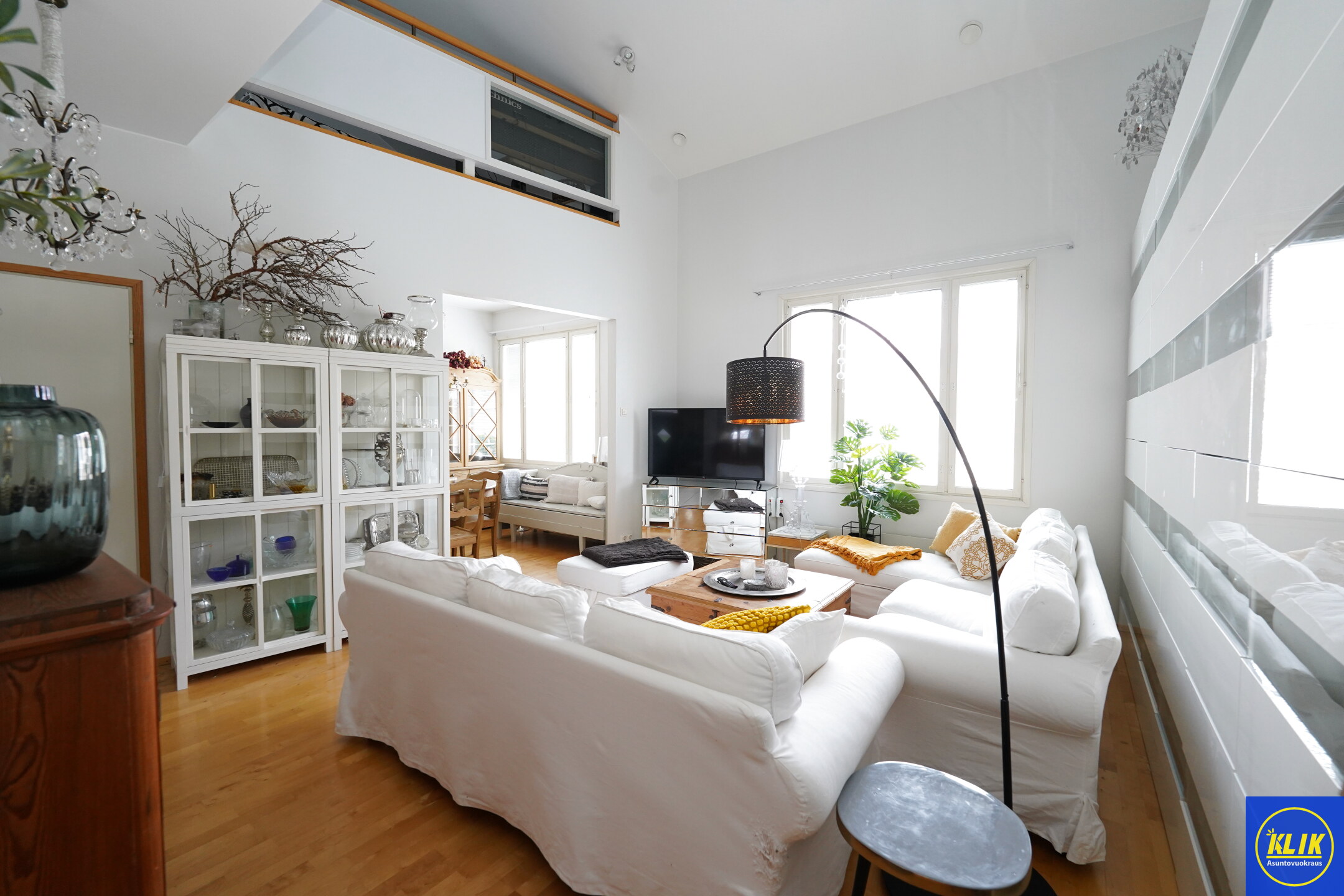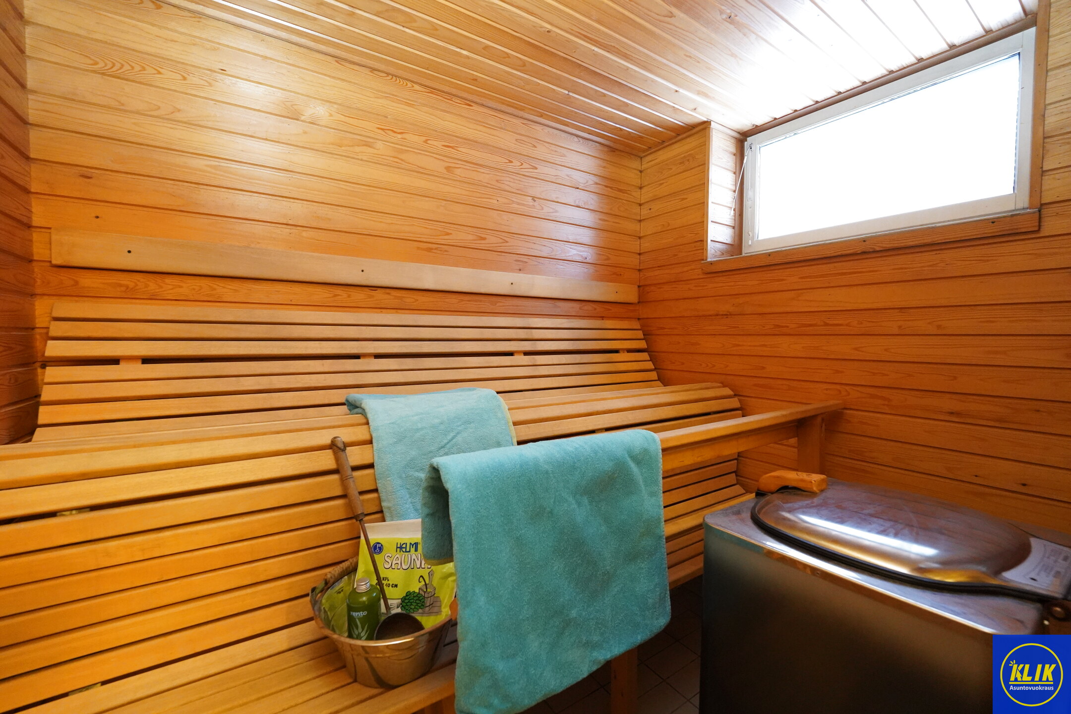 Kylpyhuone- ja WC-tilat: Asunnossa on kolme WC:tä – yksi jokaisessa kerroksessa! Tilavasta kylpyhuoneesta löytyvät kaksi suihkua ja lattialämmitys tuomassa arjen luksusta. Oma sauna tarjoaa rentouttavat löylyt ja puun värinen sisustus luo perinteistä saunatunnelmaa.