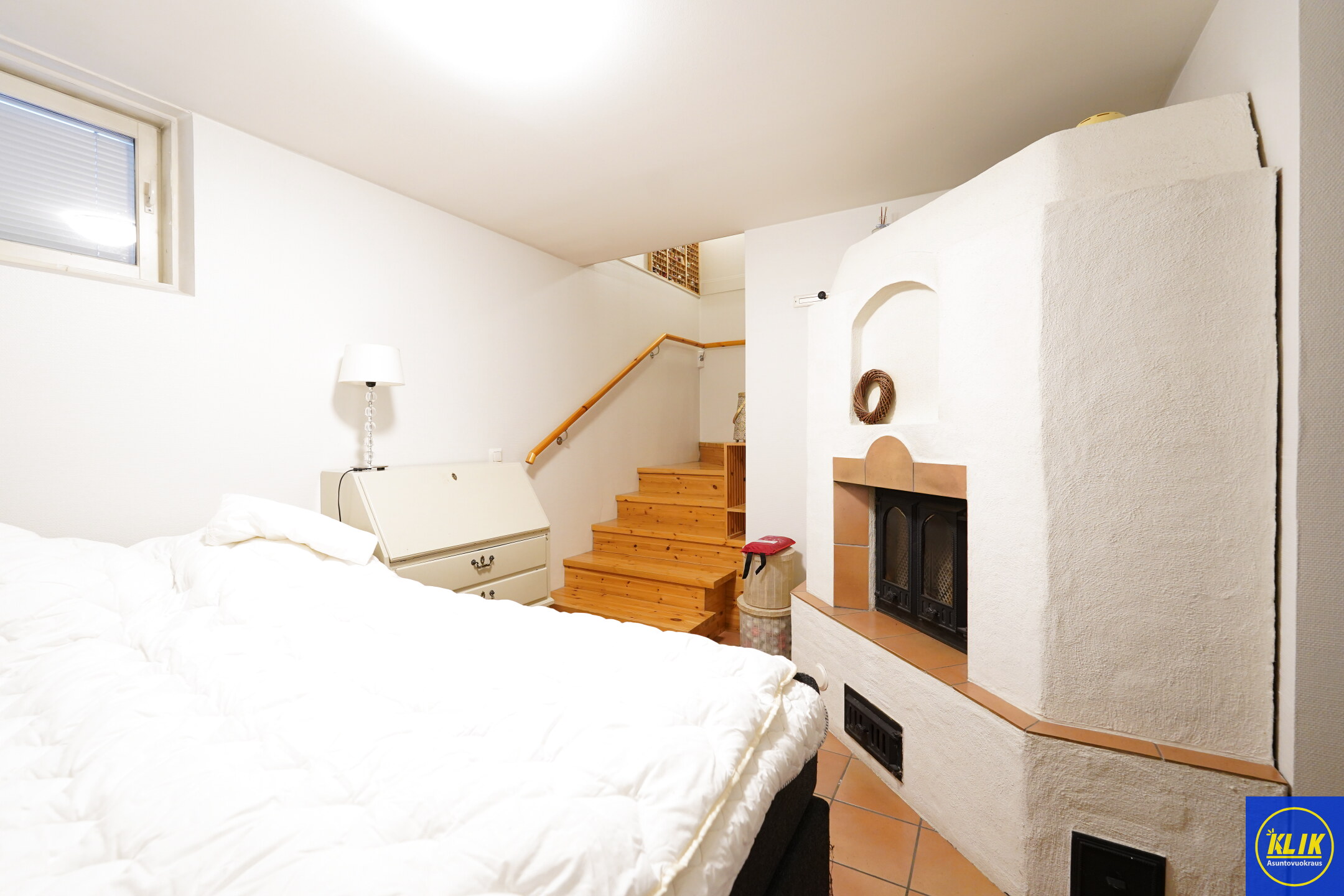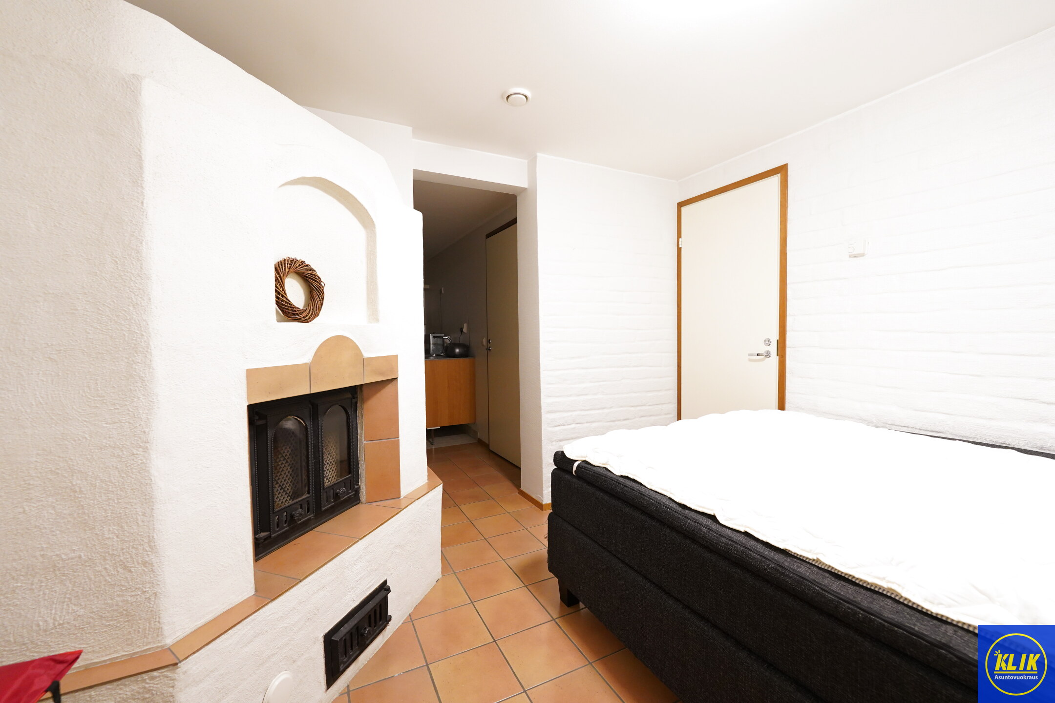 Alakerta: Kylpyhuone, sauna, kodinhoitohuone sekä takkahuone, joka toimii makuutilana.