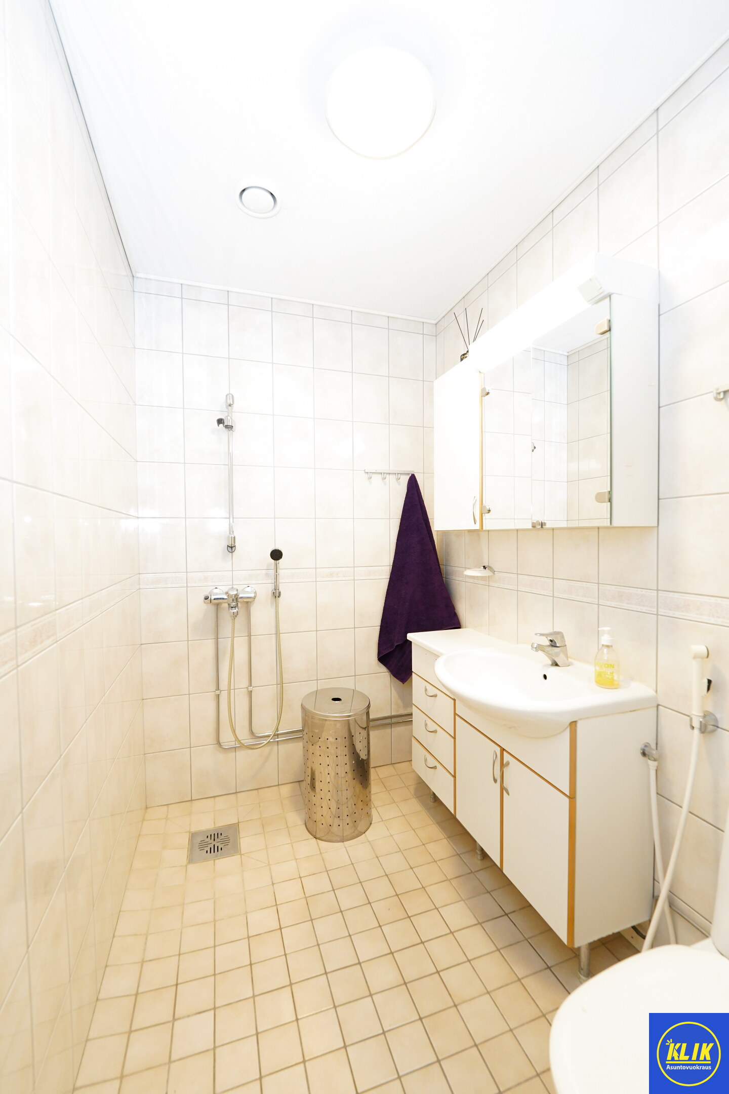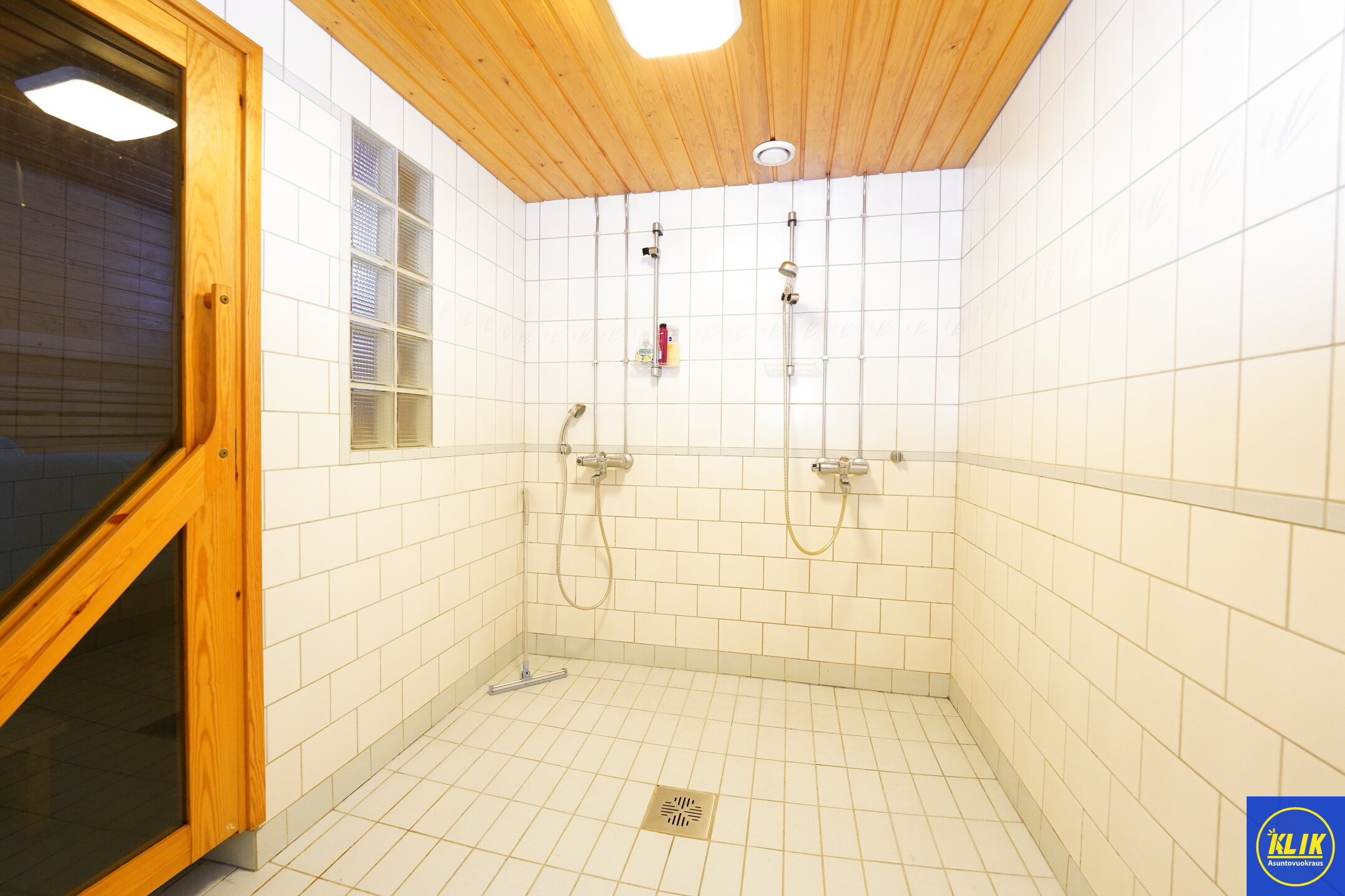 laattalattia; laattaseinä, asunnossa kolme WC:tä, allaskaappi; peilikaappi, suihku; kaksi suihkua samassa kylpyhuoneessa; asunnossa kaksi erillistä suihkutilaa, , , kylpyhuoneessa lattialämmitys; oma sauna