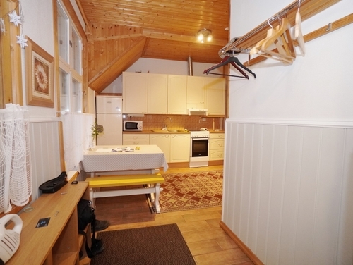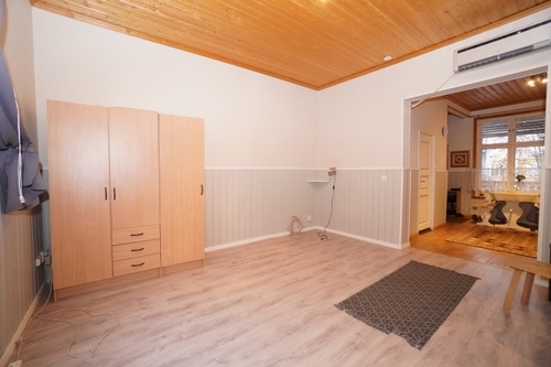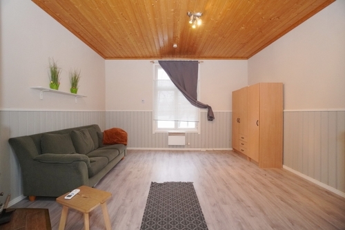 Tilavaan huoneeseen saa sängyn ja sohvakalustuksen. Myös tästä huoneesta löytyy takka. Lisäksi asunnossa on ilmalämpöpumppu, keittiössä yksikkö ja toisessa huoneessa toinen.