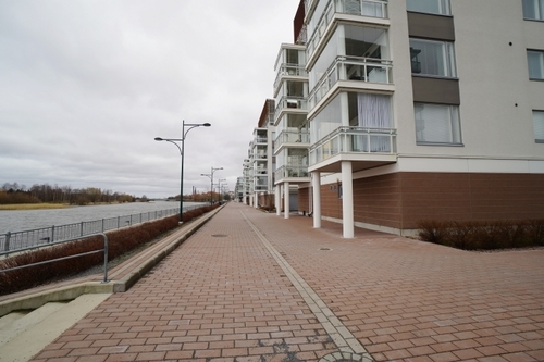 Asunnossa on suuri lasitettu parveke upealla jokinäkymällä. Tähän parvekkeelle mahtuvat isotkin terassikalusteet.