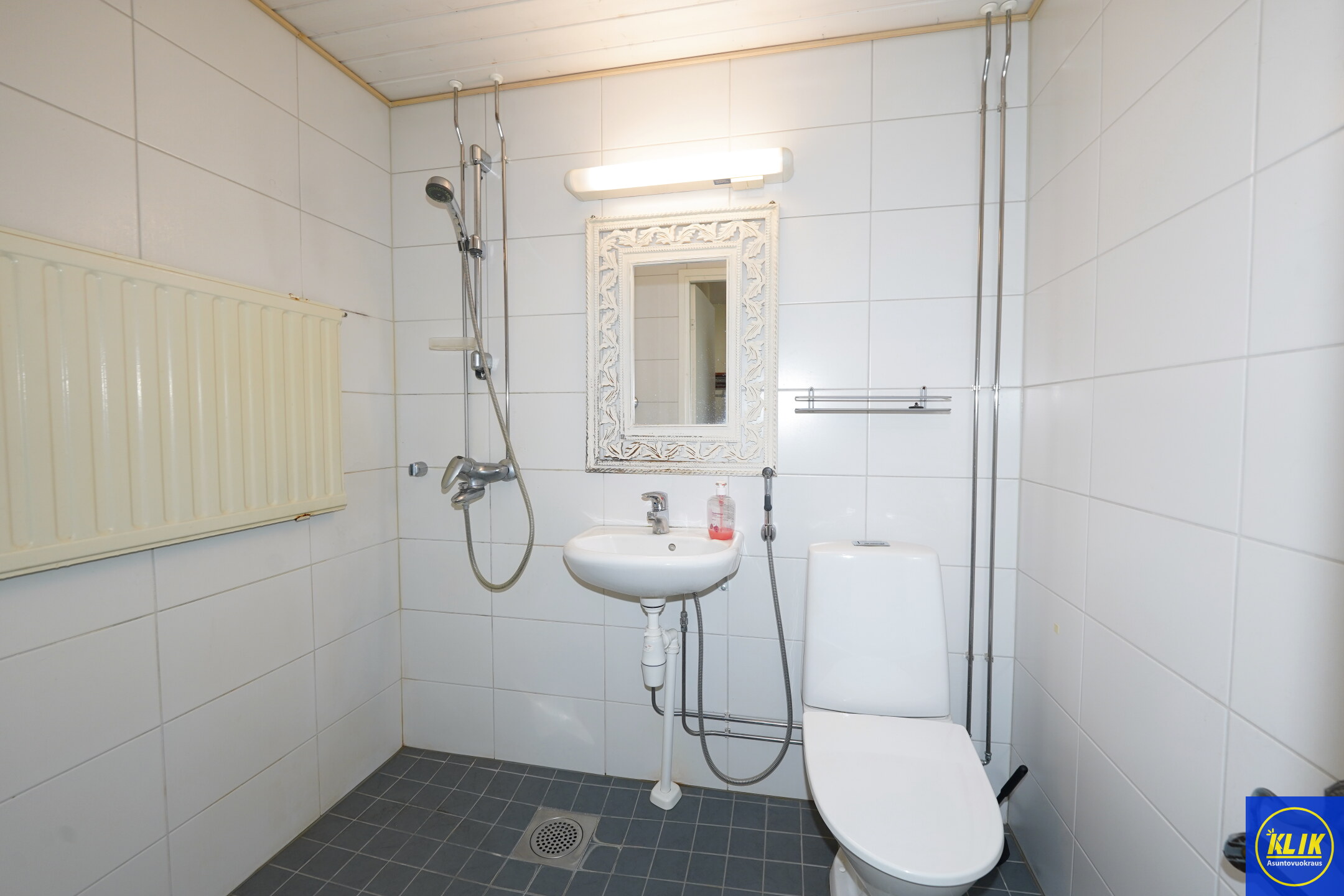 laattalattia; laattaseinä, peilikaappi; muuta säilytystilaa WC:ssä, suihku, pesukonevalmius