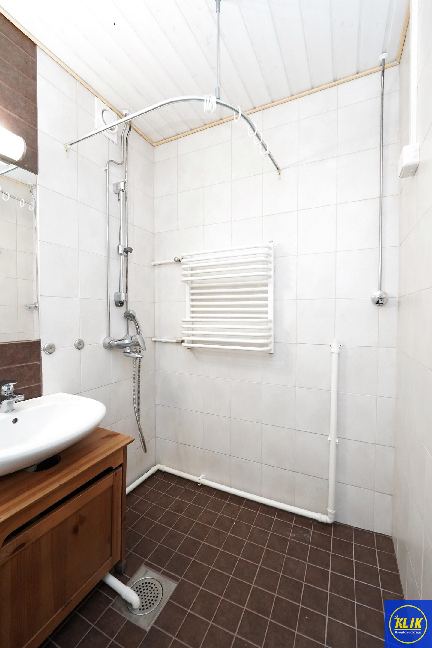 laattalattia; laattaseinä, , allaskaappi, suihku, , pesukonevalmius, kylpyhuoneessa lattialämmitys