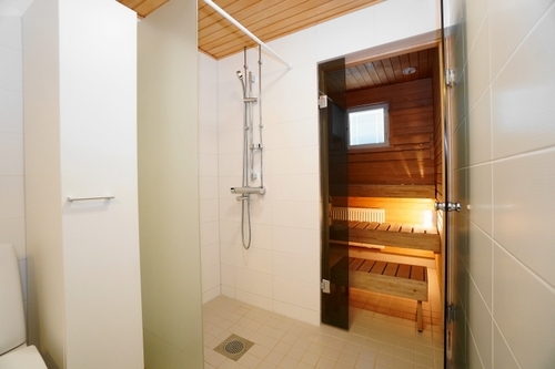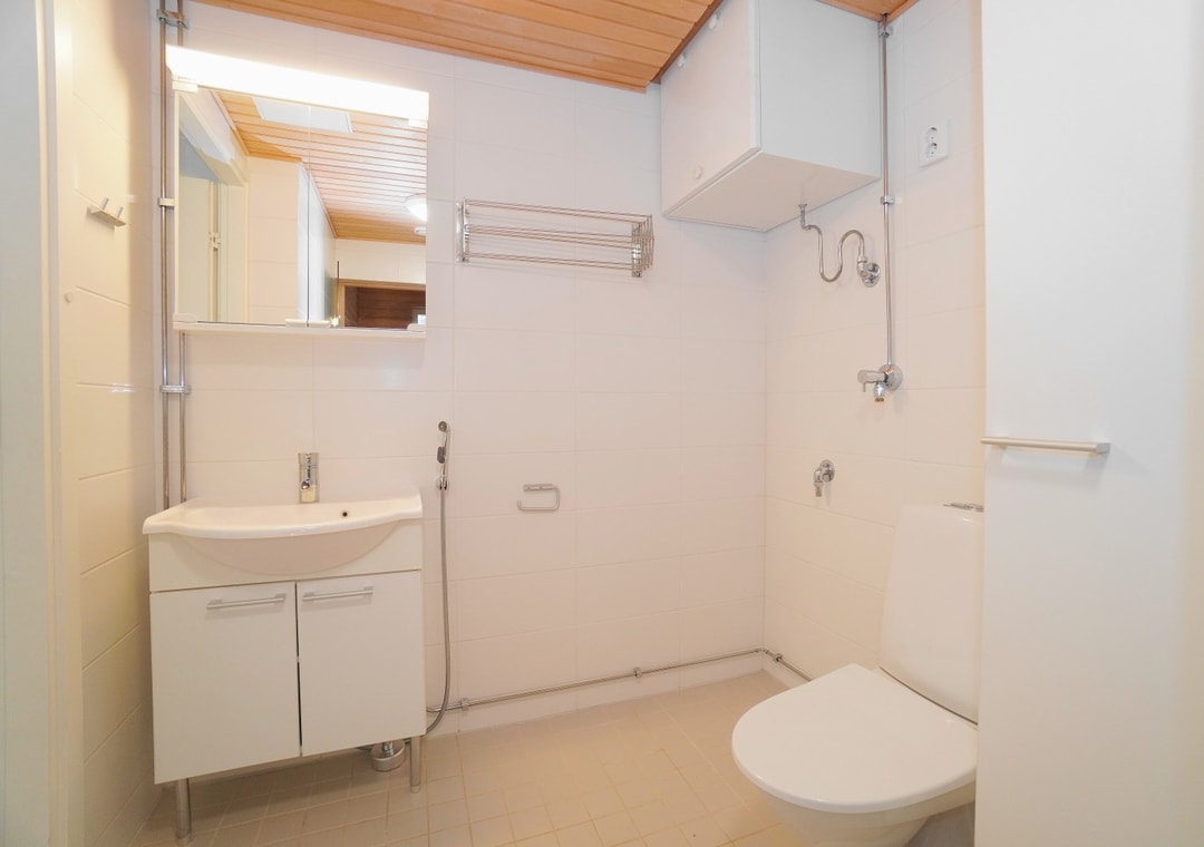 laattalattia; laattaseinä, , allaskaappi; peilikaappi; muuta säilytystilaa WC:ssä, suihku; suihkuseinä, , pesukonevalmius, lattialämmitys; sauna; avattava ikkuna