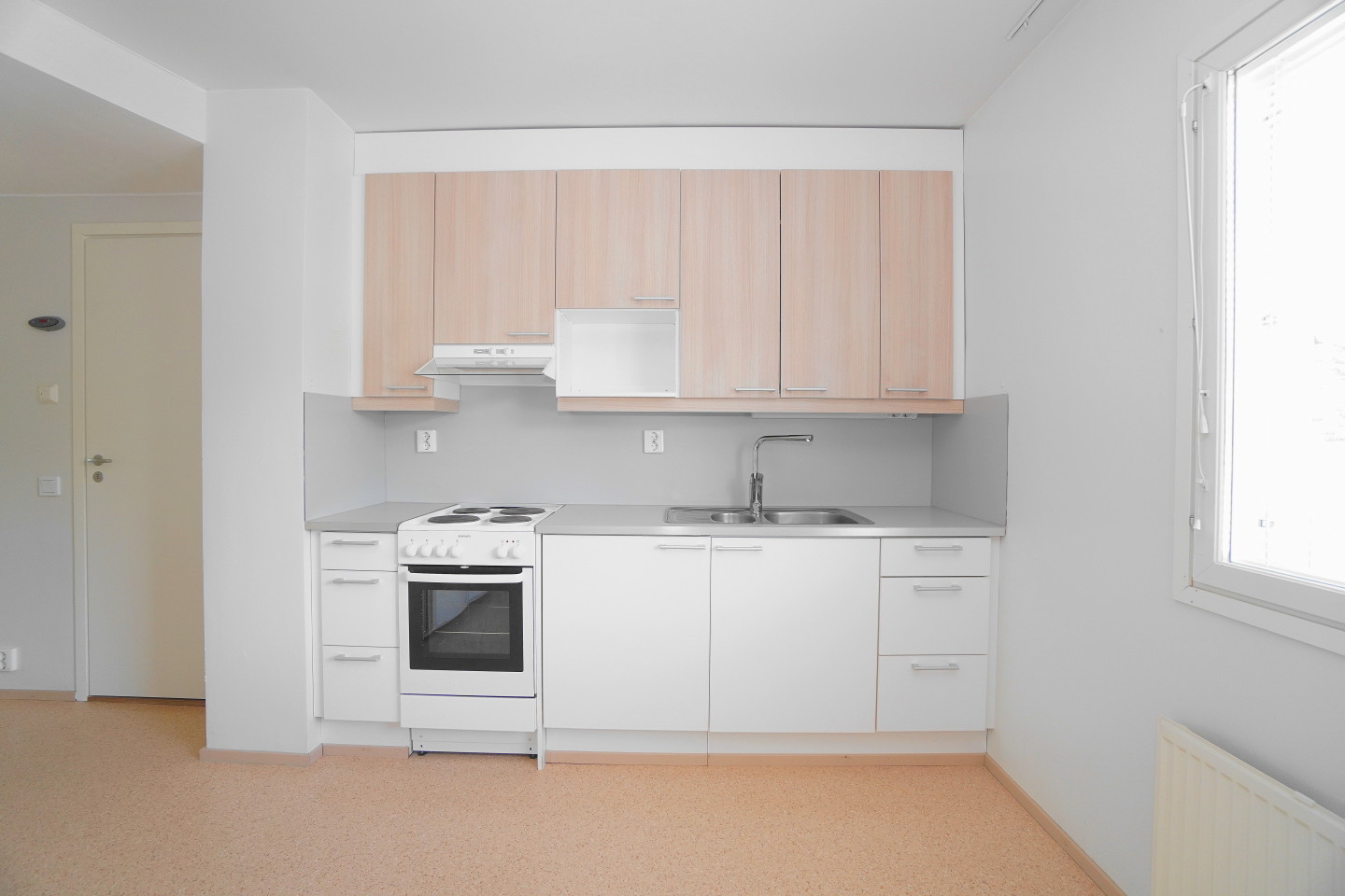 erillinen keittiölaminaattitasot keittiössä, sähköliesi; liesituuletin, pesukoneliitos, jääkaappipakastin, paljon kaappitilaa