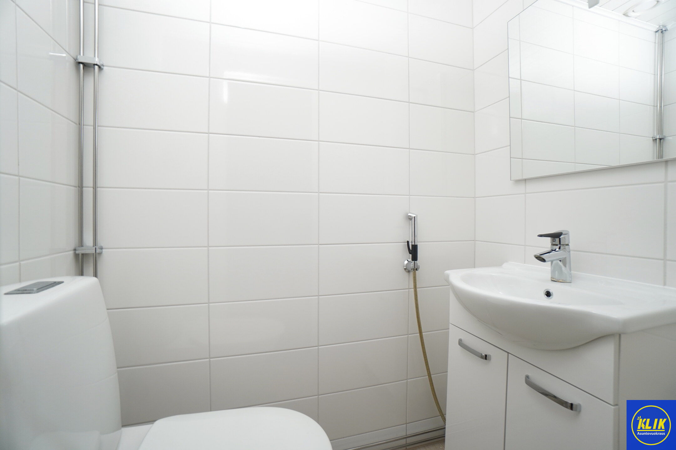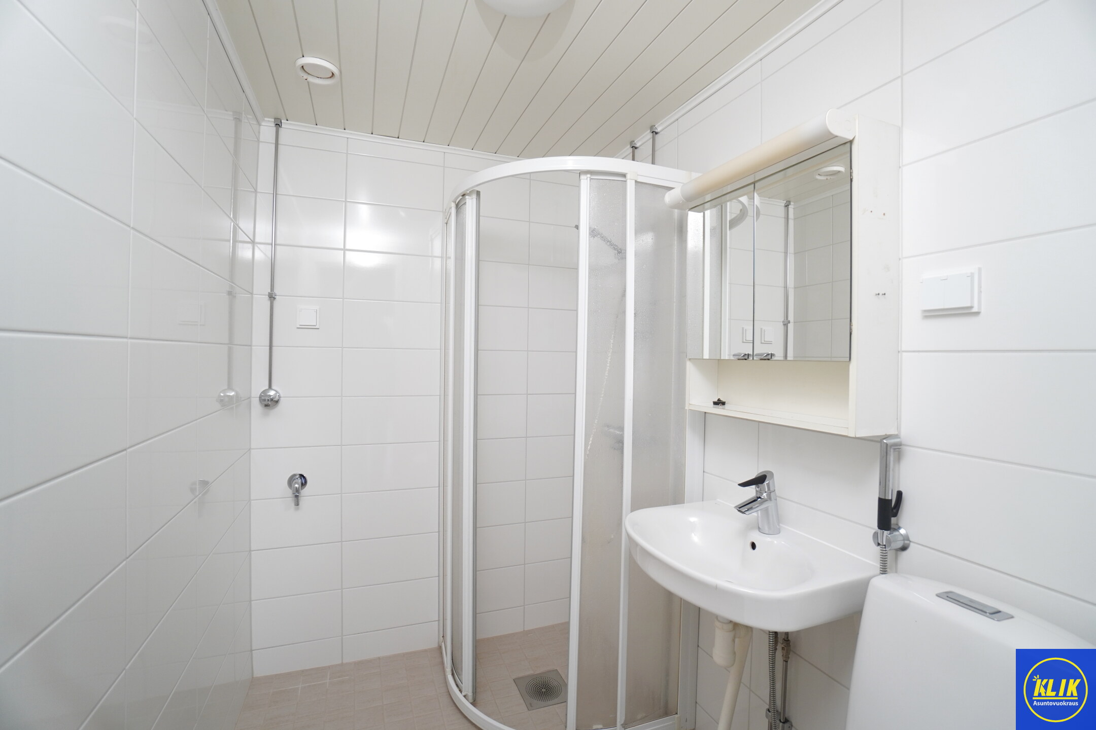 laattalattia; laattaseinä, asunnossa kaksi WC:tä, allaskaappi; peilikaappi, suihku; suihkukaappi, , pesukonevalmius,