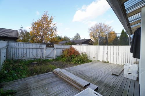 Asunnon takapihalla on suuri terassi ja oma piha sekä pihavarasto.