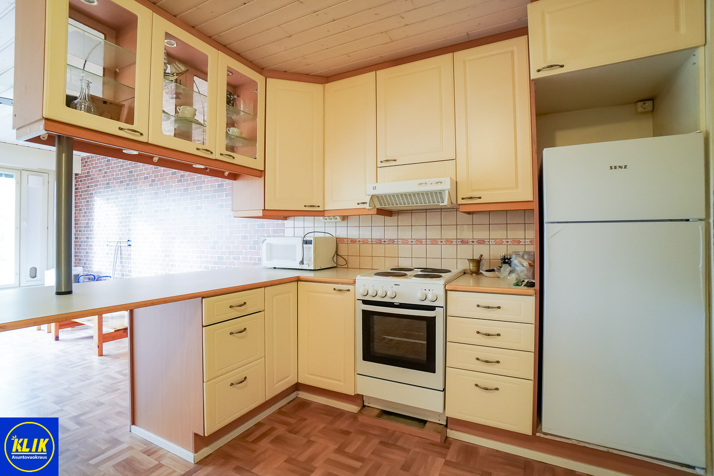 erillinen keittiölaminaattitasot keittiössä, sähköliesi; liesituuletin, astianpesukone (pöytämalli), jenkkikaappi, tilaa isolle ruokapöydälle; paljon kaappitilaa; paljon työskentelytilaa; suuri tiskipöytä , , , , , ,