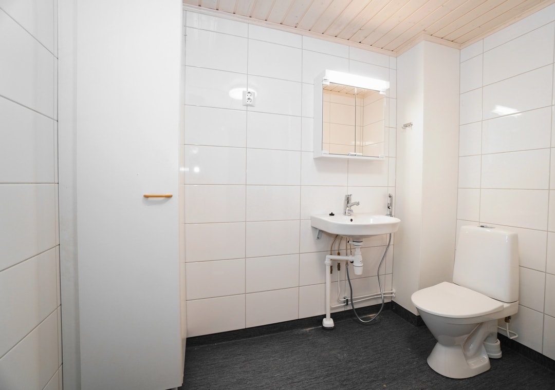 Kylpyhuone on erittäin siistissä kunnossa ja sinne saa vaikka pesutornin. Pesuhuoneen yhteydessä on oma erittäin hyväkuntoinen sauna.