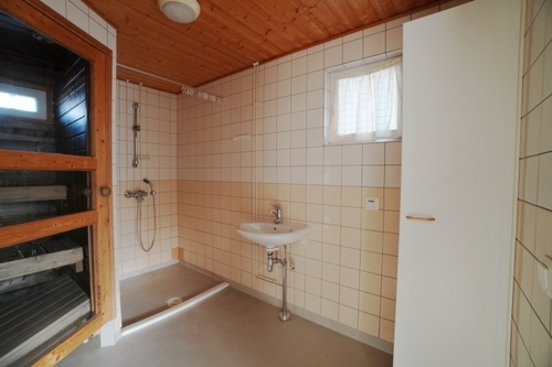 Kylpyhuone on siisti ja tilava ja lisäksi siellä on säilytystilaa ja paikka pesukoneelle. Kylpyhuoneen yhteydessä on myös oma sauna.