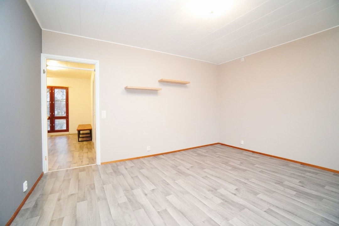 Lattiat: laminaattilattiat, seinät: maalatut seinät; tapetoidut seinät, katto: paneelikatto, ikkunat:tuuletusikkunat, erillinen makuuhuone; makuuhuoneessa säilytystilaa; makuuhuoneessa vaatekaapit; parisänky mahtuu makuutilaan, , Huoneistokohtaiset erilliset säilytystilat taloyhtiön käytännön mukaan, muut tilat: autopaikat taloyhtiön käytännön mukaisesti; valoisa asunto