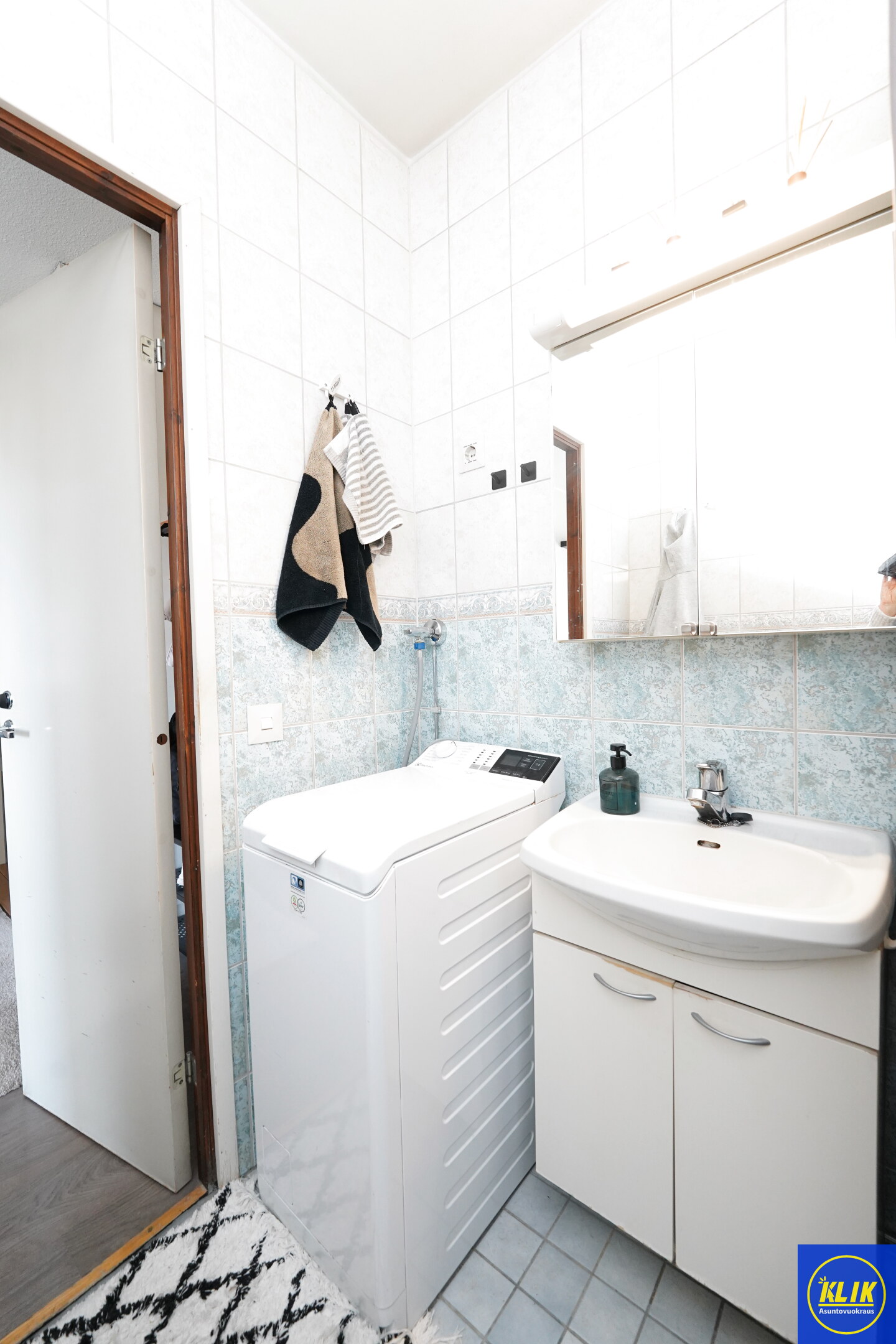 laattalattia; laattaseinä, , allaskaappi; peilikaappi, suihku; suihkuseinä, , pesukonevalmius, taloyhtiössä sauna