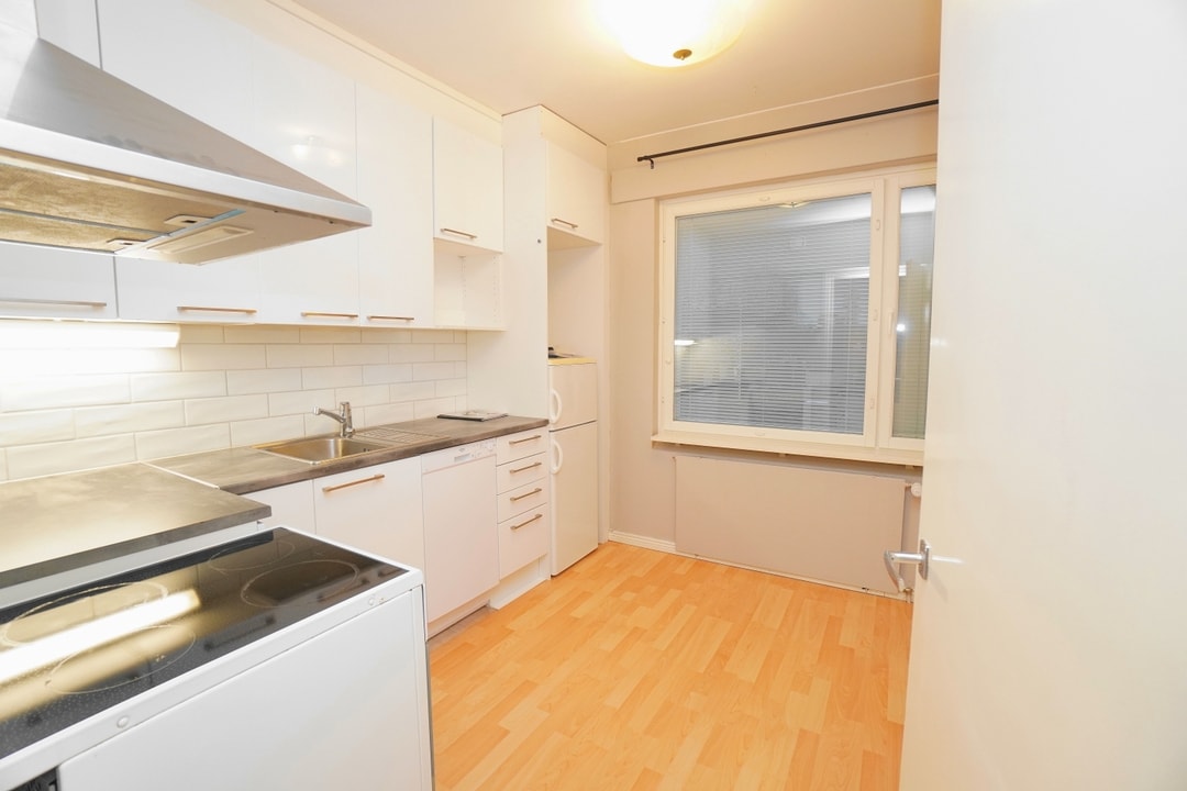 Hyväkuntoinen parvekkeellinen kaksio rauhallisesta taloyhtiöstä. Tämän kodin kylpyhuone on täysin uusittu putkiremontin yhteydessä vuonna 2018. Myös keittiö on todella hyväkuntoinen sekä avara vaaleine kaapistoineen. Muun varustuksen lisäksi tästä keittiöstä löytyy astianpesukone helpottamaan arjen askareita.
