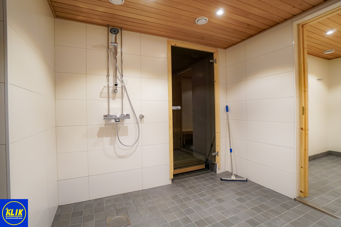 laattalattia; laattaseinä, , allaskaappi; peilikaappi, suihku; suihkuseinä, , pesukonevalmius, kylpyhuoneessa lattialämmitys; taloyhtiössä sauna