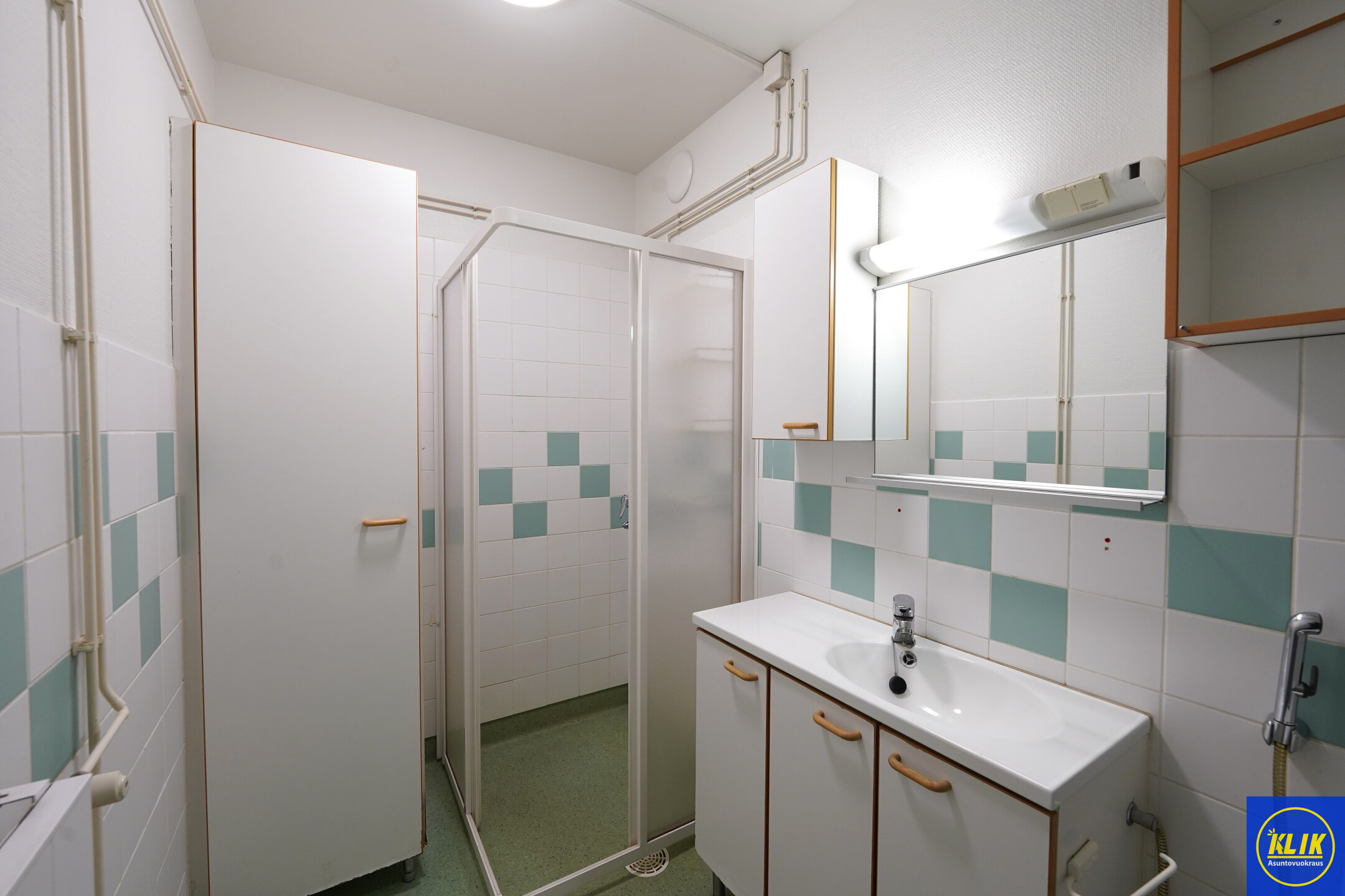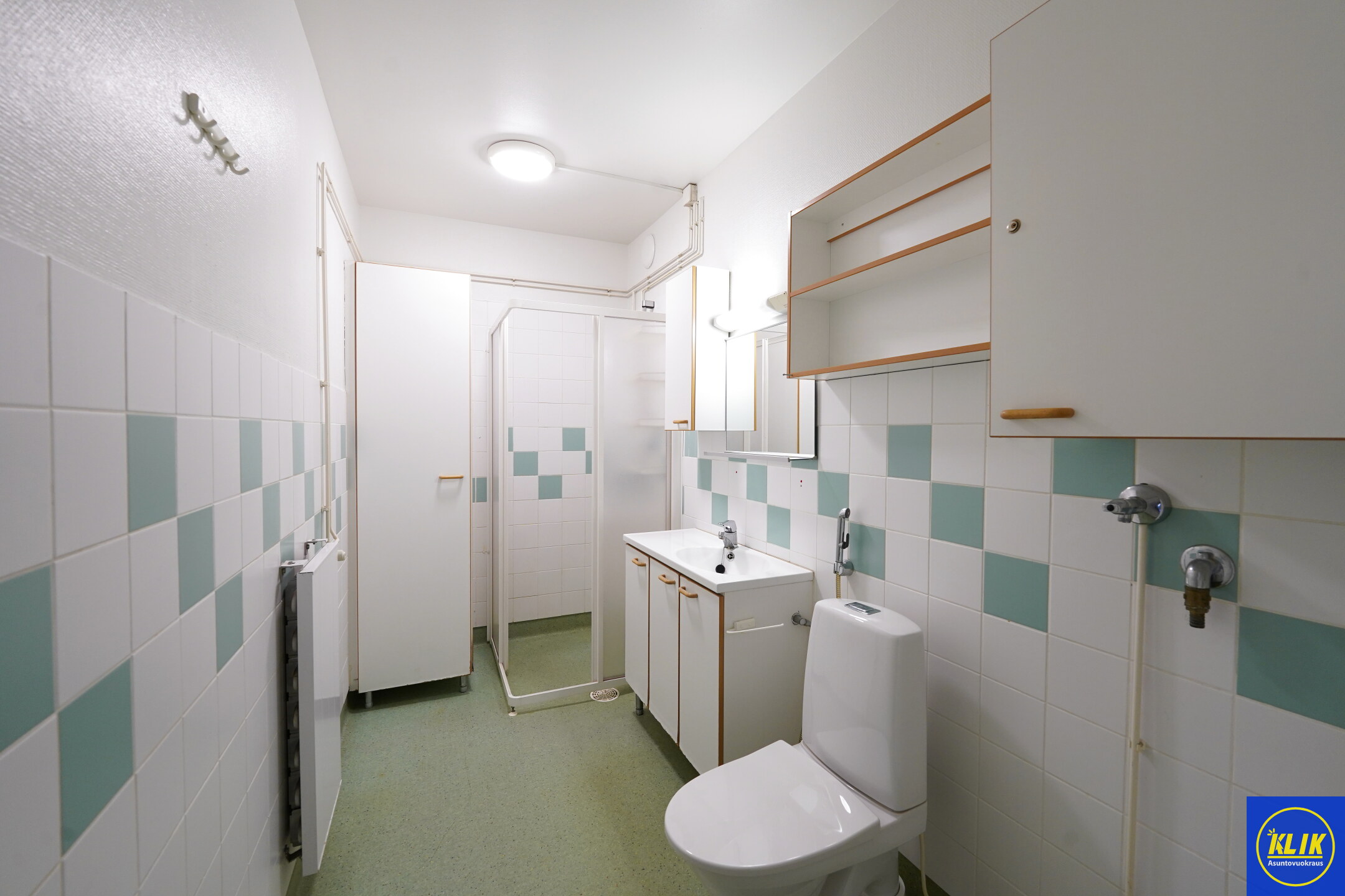 muovimatto; osittainen laattaseinä, , allaskaappi; muuta säilytystilaa WC:ssä, suihku; suihkuseinä, , pesukonevalmius,