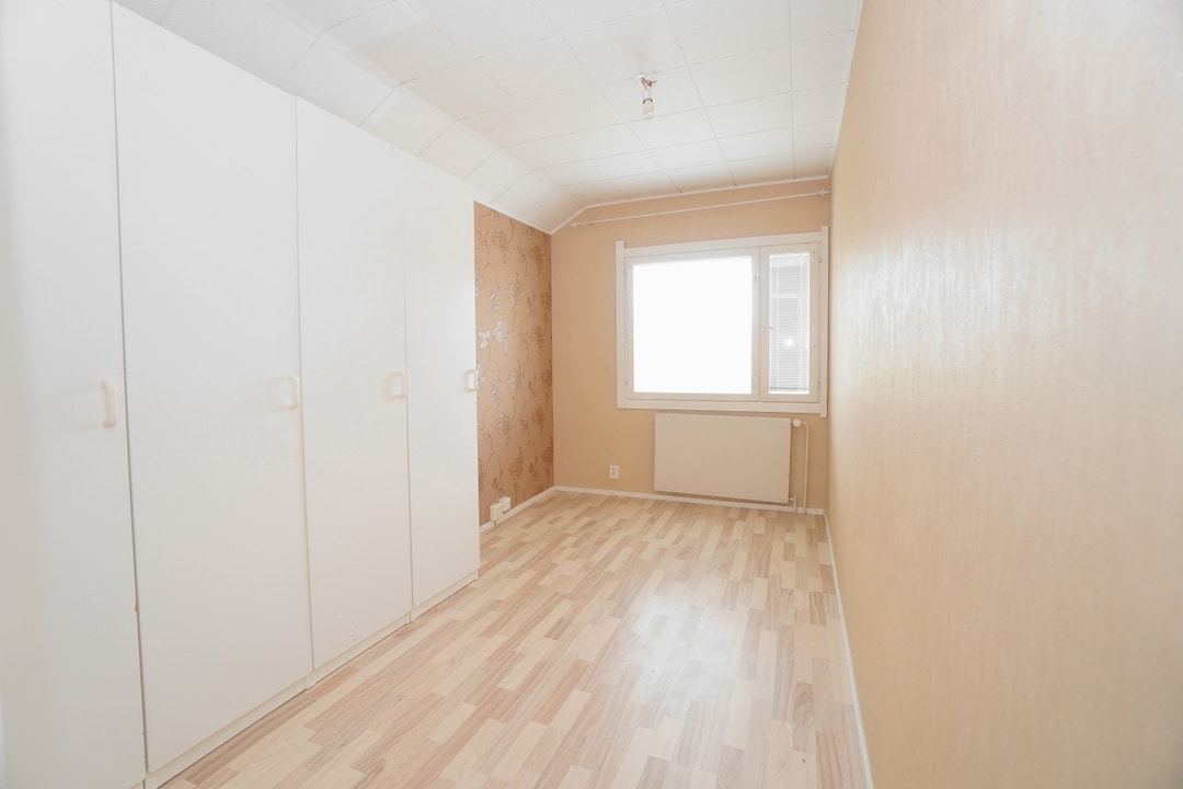 Lattiat: laminaattilattiat; muovimattolattiat, seinät: maalatut seinät; tapetoidut seinät, katto: paneelikatto, ikkunat:sälekaihtimet; tuuletusikkunat, erillinen makuuhuone; useita makuuhuoneita; parisänky mahtuu makuutilaan, , Huoneistokohtaiset erilliset säilytystilat taloyhtiön käytännön mukaan, muut tilat: valoisa asunto