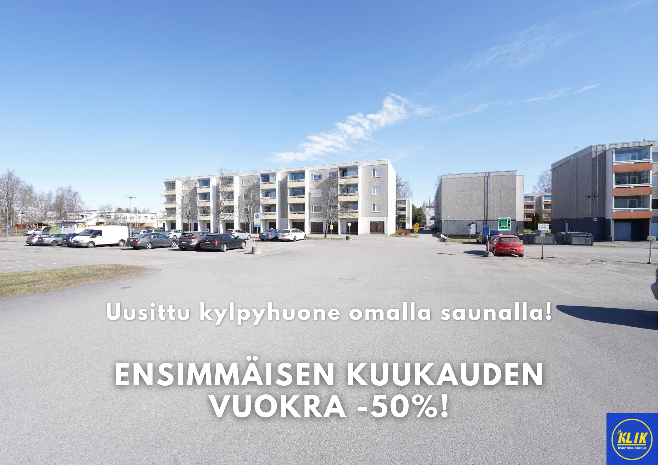 Voit nyt myös ostaa vuokravakuuden tähän asuntoon hintaan 19,90€/kk. Tilinavaus- ja hoitokulut 0€. Voit valita Klik Vakuuspalvelun vakuudeksi asuntohakemusta täyttäessäsi.
