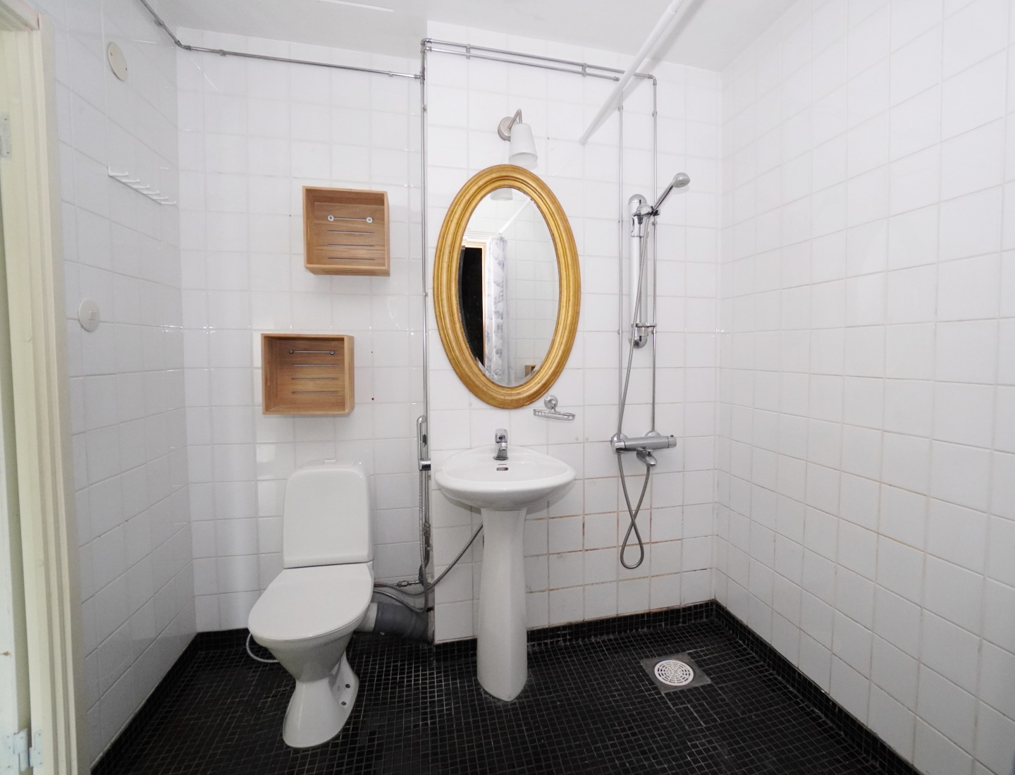 laattalattia; laattaseinä, suihku, pesukonevalmius, oma sauna