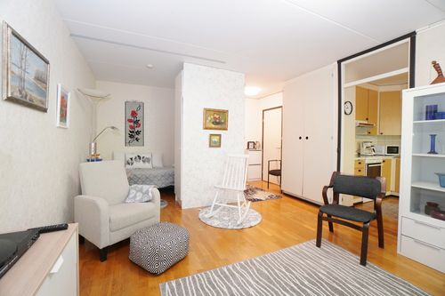 Lattiat: parkettilattiat, seinät: maalatut seinät; tapetoidut seinät, katto: maalattu katto, ikkunat:sälekaihtimet; tuuletusikkunat, makuualkovi; makuuhuoneessa säilytystilaa; makuuhuoneessa vaatekaapit, , Huoneistokohtaiset erilliset säilytystilat taloyhtiön käytännön mukaan, muut tilat: autopaikat taloyhtiön käytännön mukaisesti; valoisa asunto; alkovi
