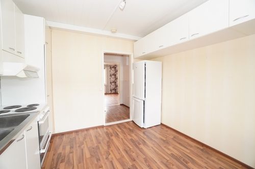 Keittiö ja huone itsessään ovat todella hyvän kokoisia ja keittiöön mahtuu tarvittaessa isompikin ruokapöytä vaivatta sekä kaappitilaa on hyvin. Lisäksi keittiössä on vuokralaiselle valmiina pyykinpesukone. Kylpyhuone on kauttaaltaan siistissä kunnossa. Asunto on läpitalon huoneisto avaralla pohjaratkaisulla.
