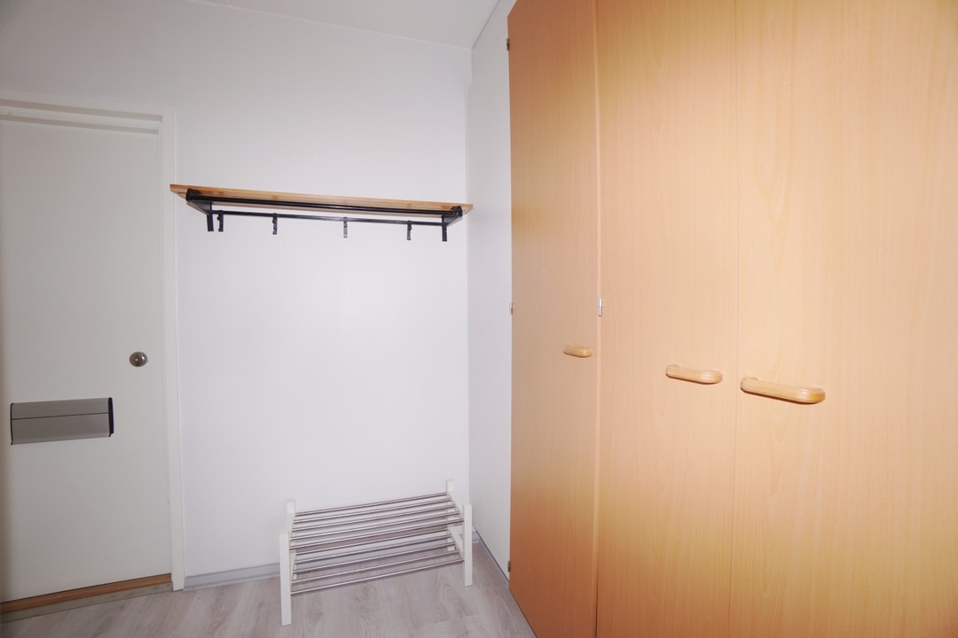 Lattiat: laminaattilattiat, seinät: maalatut seinät; tapetoidut seinät, katto: maalattu katto, ikkunat:tuuletusikkunat, makuualkovi; parisänky mahtuu makuutilaan, , asunnolle kuuluu häkkivarasto, muut tilat: valoisa asunto
