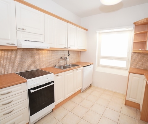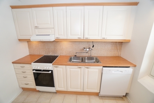 erillinen keittiö, laminaattitasot keittiössä, keraaminen- tai induktioliesi; liesituuletin, astianpesukone (60cm), jääkaappipakastin, paljon kaappitilaa; paljon työskentelytilaa