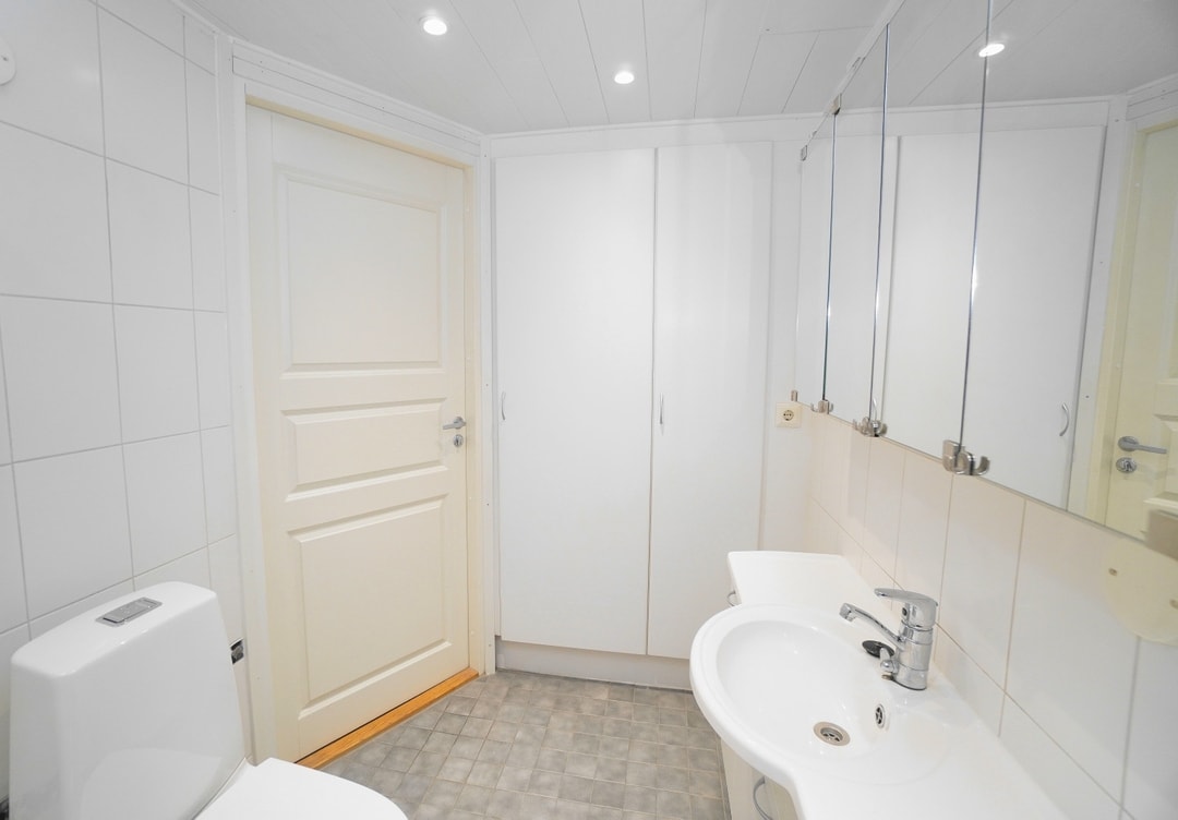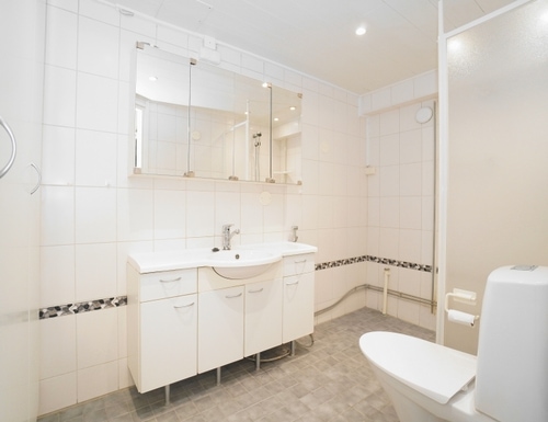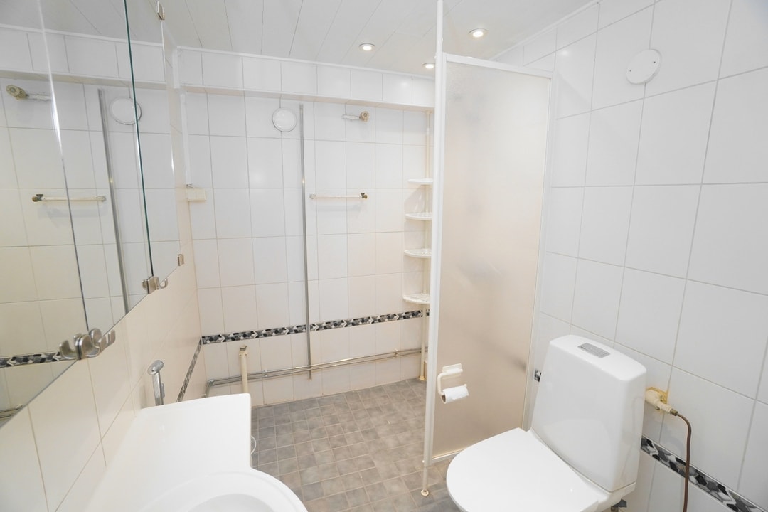 laattalattia; laattaseinä, allaskaappi; peilikaappi, suihku; suihkuseinä, pesukonevalmius