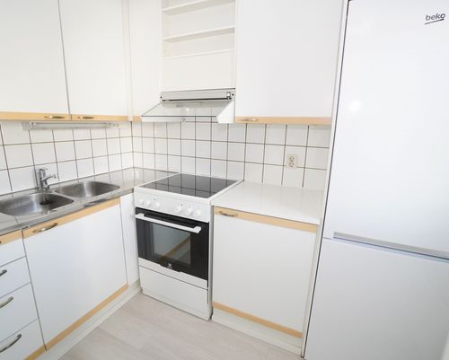 erillinen keittiö, laminaattitasot keittiössä, keraaminen- tai induktioliesi; liesituuletin, jääkaappipakastin