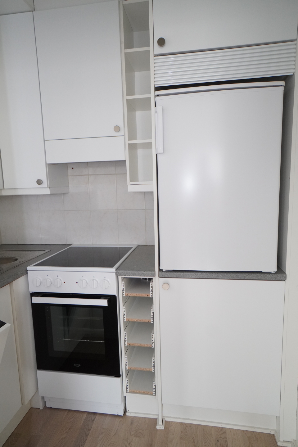 keittokomerolaminaattitasot keittiössä, keraaminen- tai induktioliesi; liesituuletin, astianpesukone (45cm); Integroitu, jääkaappi pakastelokerolla, , , , , , ,