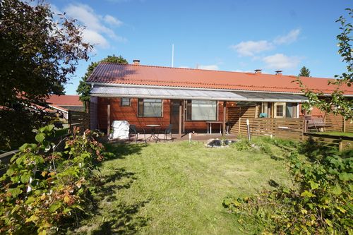 Olohuoneen kautta pääsee omalle takapihalle ja terassille. Oma suojaisa aidattu piha on loistava lasten leikeille ja grillin sekä kalusteet saa katetulle terassille.