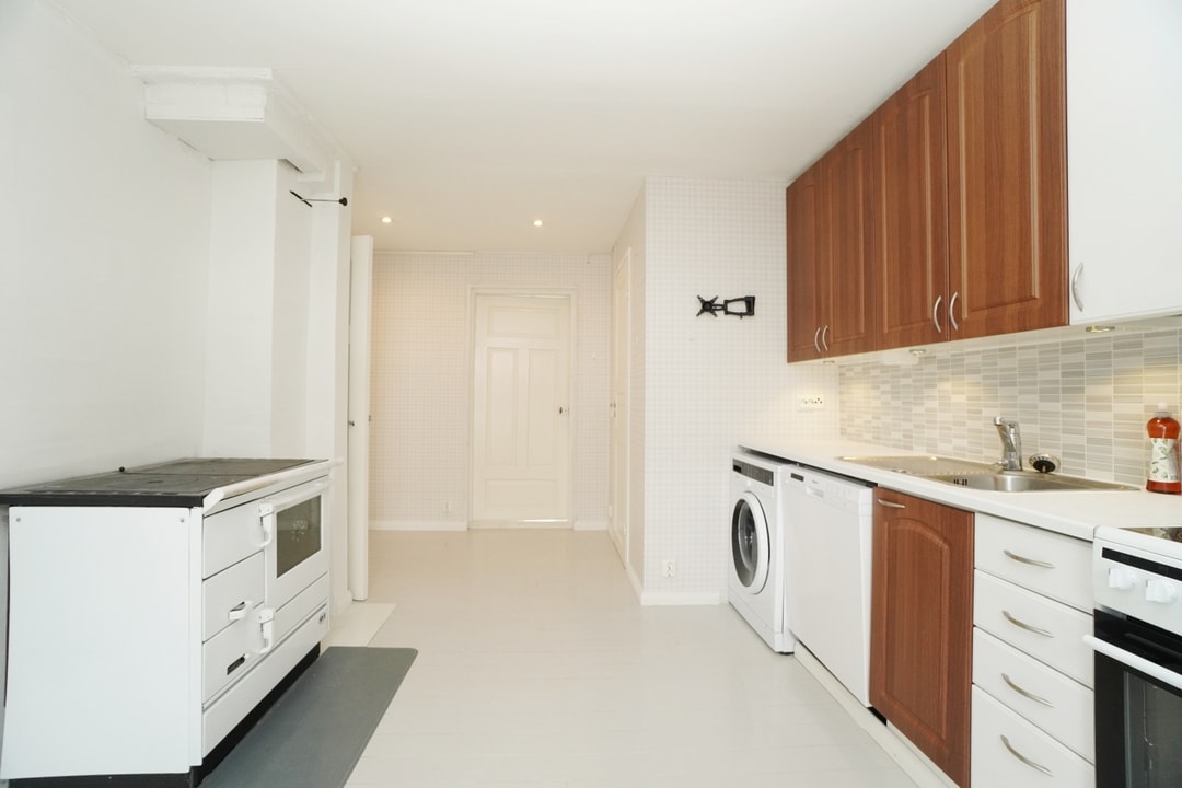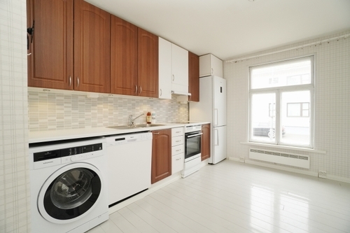 Hirsitalossa on tehty runsaasti remontteja ja koti onkin siistikuntoinen. Keittiössä on hyväkuntoiset kodinkoneet mm. astianpesukone. Pyykinpesukone on keittiössä asukkaan käyttöön. Hieno puuliesi kruuna tämän keittiön ilmeen. Koko asunnossa on kaunis lankkulattia, joka on lämmin jalalle ja luo kotiin omanlaisensa tunnelman. Samoin tähän kotiin on jätetty myös jotain vanhaa, kuten hienot väliovet. Remontti on toteutettu hienosti yhdistelemällä modernia teknologiaa, mutta talon ajan henki näkyy samanaikaisesti!