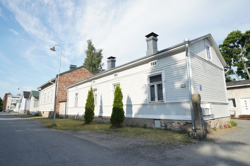 Pihapiiri on idyllinen ja puutaloalue on pala historiaa kaupungin laidalla. Kauniit talot ja vehreät pihapiirit tekevät tästä oivan asuinalueen.