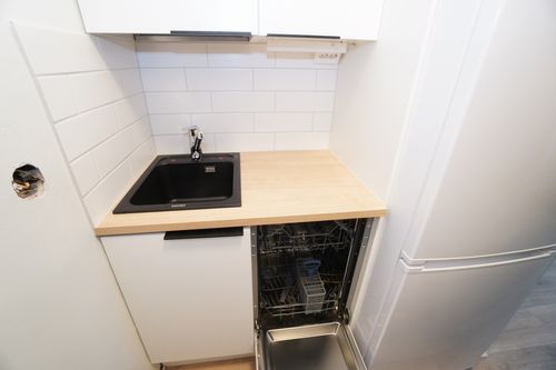 keittokomero, laminaattitasot keittiössä, keraaminen- tai induktioliesi; keittotaso ja kalusteuuni; liesituuletin, astianpesukone (45cm), jääkaappipakastin