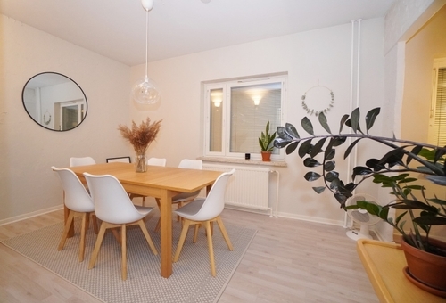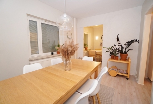 Kaunis vaaleasävyinen tilava perheasunto hyvällä pohjaratkaisulla. Asunnossa on remontoitu keittiö uudenveroisilla kodinkoneilla. Keittiössä on myös kuivaava pyykinpesukone valmiina asukkaan käyttöön, sekä integroitu astianpesukone. Erillinen ruokailuhuone mahdollistaa isonkin ruokapöydän tilaan.