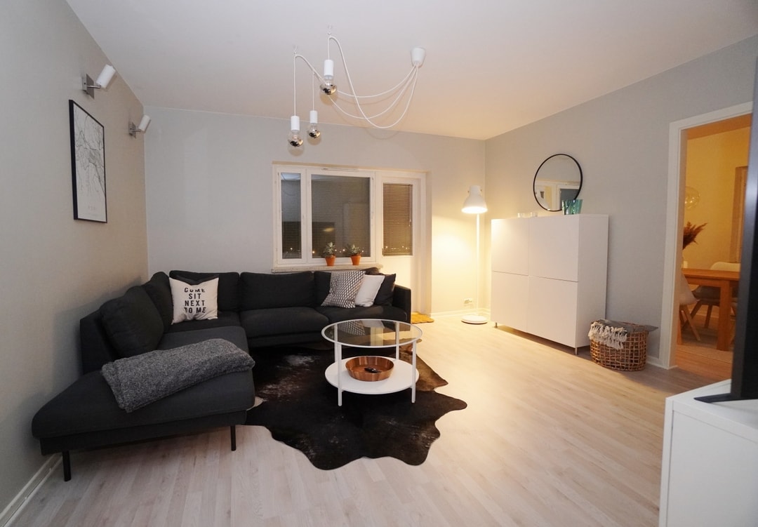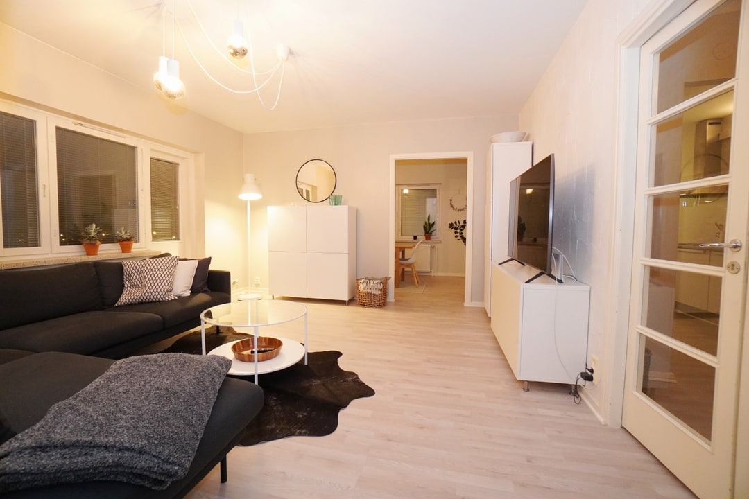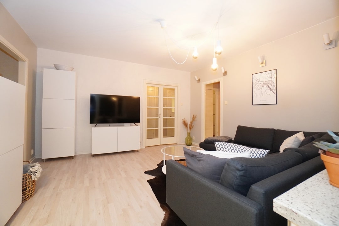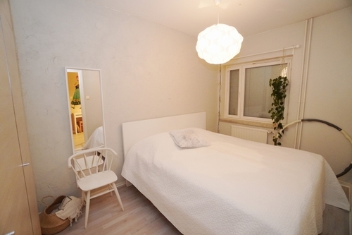 Asuntoon kuuluu kaksi makuuhuonetta, ja tarvittaessa ruokailuhuoneesta saa myös makuuhuoneen.
