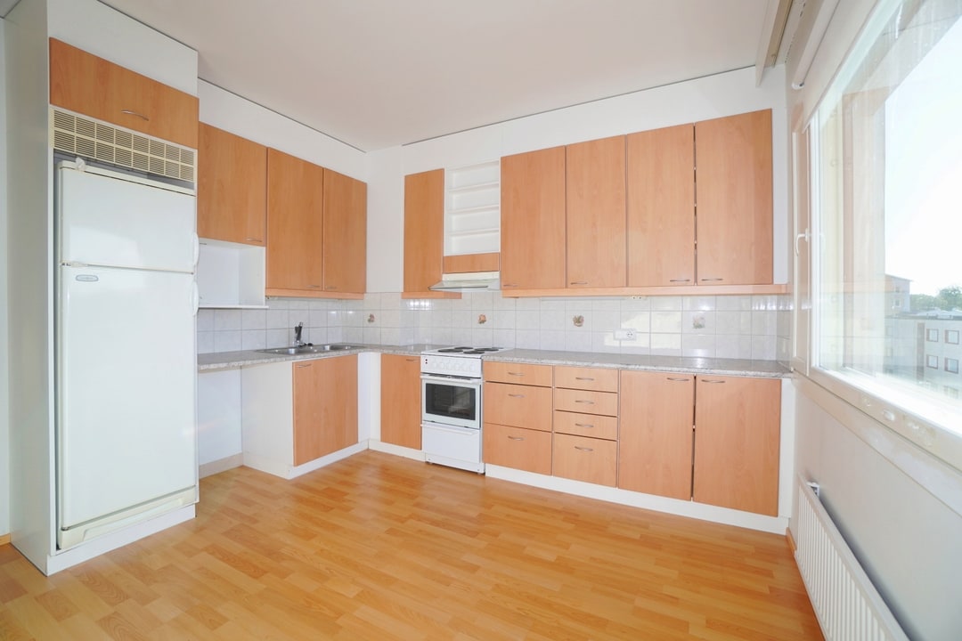 Valoisa koti heti vapaana hyvästä taloyhtiöstä palveluiden läheltä. Asunnossa on siistikuntoinen keittiö, jossa on hyvin kaapistoja ja astianpesukoneelle liitännät valmiina. Reilun kokoisen olohuoneen kautta kulku lasitetulle parvekkeelle sisäpihan suuntaan.