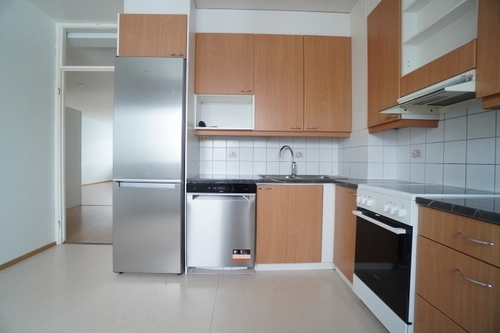 erillinen keittiö, laminaattitasot keittiössä, keraaminen- tai induktioliesi; liesituuletin, astianpesukone (60cm), jääkaappipakastin, tilaa isolle ruokapöydälle; paljon kaappitilaa; paljon työskentelytilaa; mikrohylly