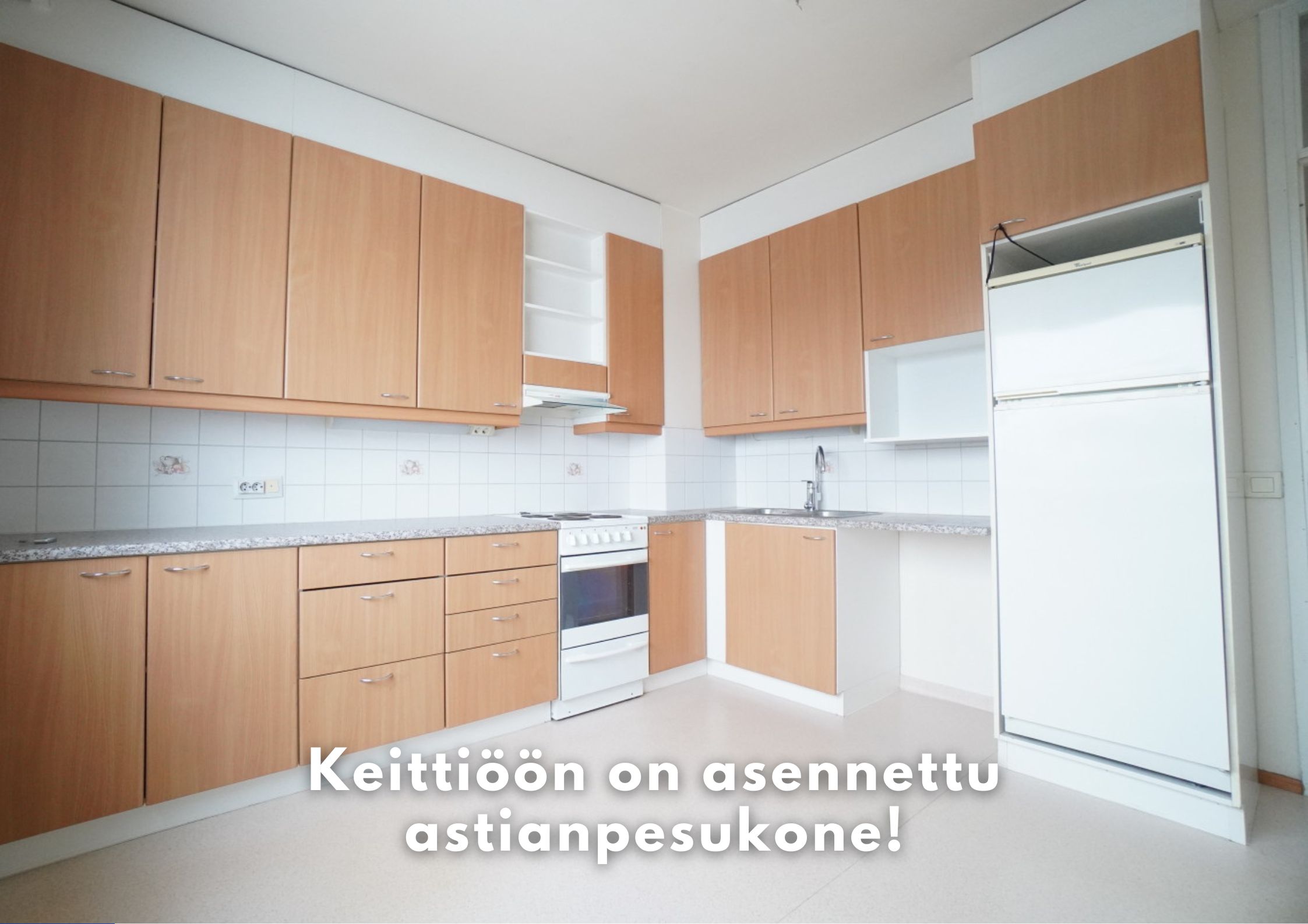 erillinen keittiölaminaattitasot keittiössä, sähköliesi; liesituuletin, pesukoneliitos, jääkaappipakastin, tilaa isolle ruokapöydälle; paljon kaappitilaa; paljon työskentelytilaa , , , , , ,