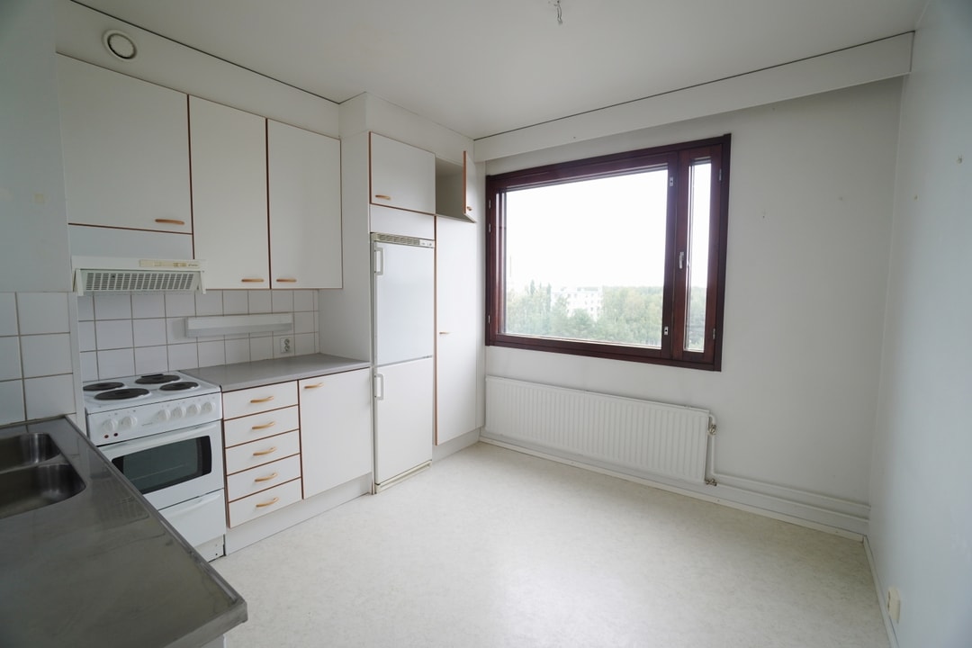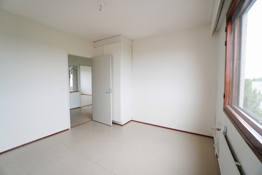Tilava perussiisti ylimmän kerroksen iso kaksio lasitetulla parvekkeella! Asunto on yleisilmeeltään perussiistissä kunnossa ja siinä on hyvä huonejako: olohuone, makuuhuone, keittiö, vaatehuone, kylpyhuone ja parveke. Iso olohuone, josta kulku lasitetulle parvekkeelle. Keittiössä todella paljon kaappi- ja työskentelytilaa. Keittiössä astianpesukone. Keittiössä tilaa suuremmallekin ruokapöydälle. Makuuhuoneeseen mahtuu isokin parisänky.