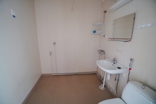 Kylpyhuoneesta löytyy reilun kokoinen paikka pyykinpesukoneelle.