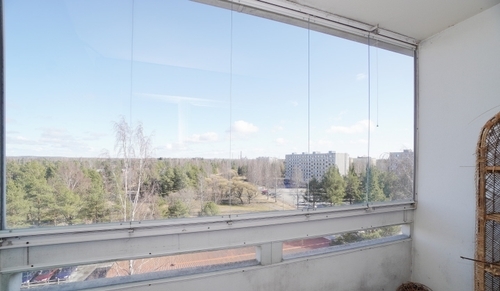 Lasitettu parveke on iso plussa, sillä sellaista ei usein yksiöissä ole! Näkymät ovatkin hienot vehreään asuinalueeseen.
