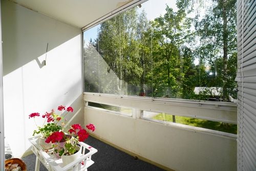Siistikuntoinen ja vaaleapintainen asunto, jossa on hyvä pohjaratkaisu. Keittiö on tilava ja kodinkoneet ovat siistit. Ison olohuoneen kautta kulku lasitetulle parvekkeelle. Makuuhuone on tarpeeksi iso parisängylle ja siellä on kaapisto säilytystä varten. Asunnossa on lisäksi iso vaatehuone. Siistikuntoisessa kylpyhuoneessa on liitännät pesukoneelle.