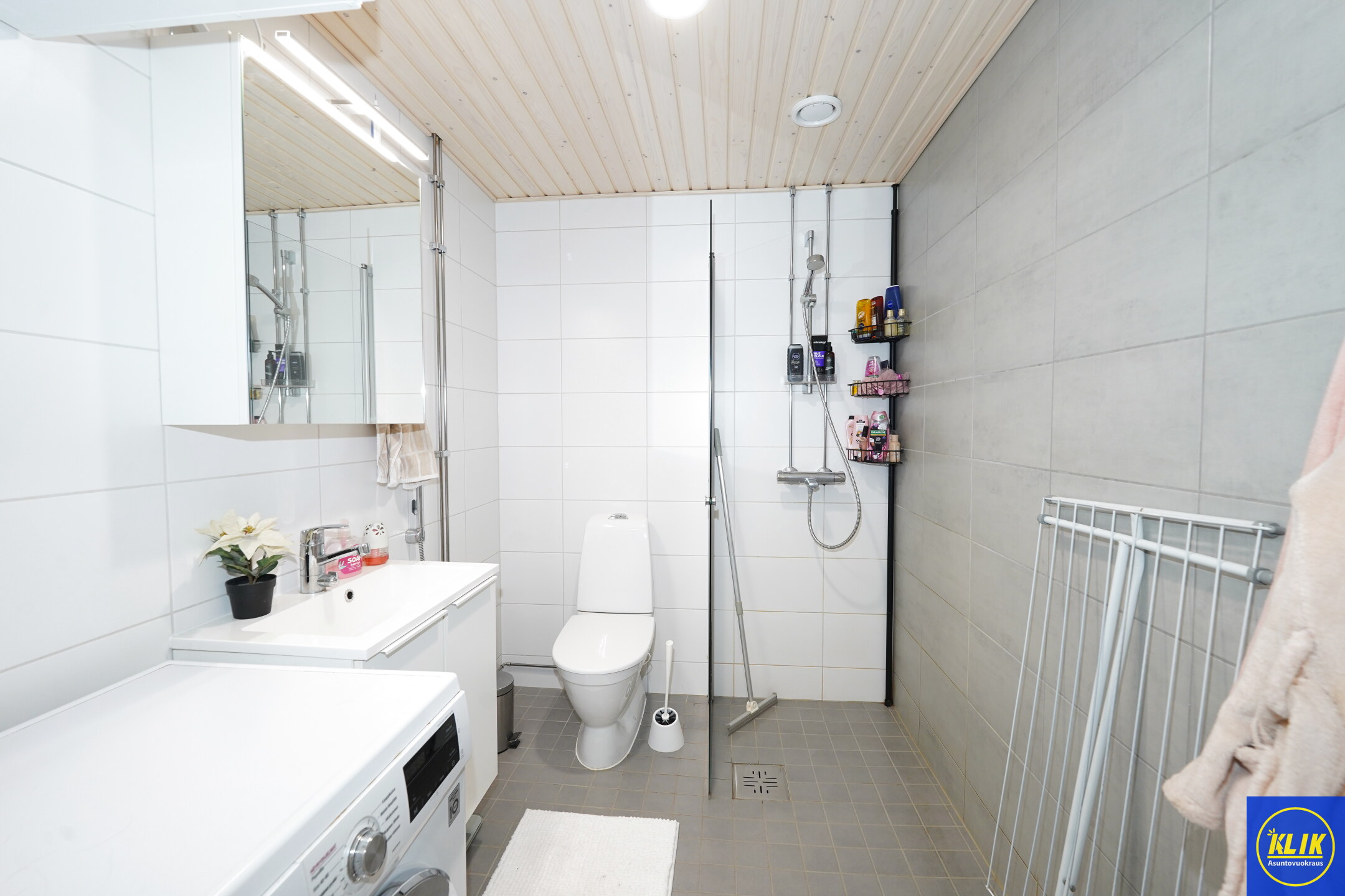 laattalattia; laattaseinä, , allaskaappi; peilikaappi, suihku; suihkuseinä, , pesukonevalmius, kylpyhuoneessa lattialämmitys; taloyhtiössä sauna