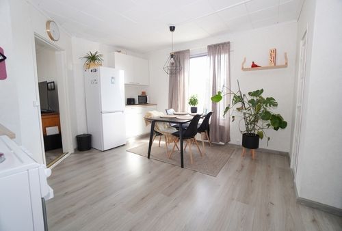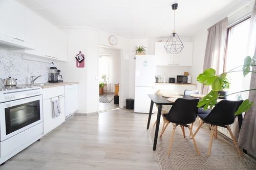 Kauniiksi remontoitu asunto, joka huokuu kodikkuutta ja omaa hyvän pohjaratkaisun. Asunnon iso keittiö tarjoaa paljon tilaa kokkailuun ja kodinkoneet ovat hyväkuntoisia. Astianpesukone kuuluu myös tämän keittiön varustukseen.