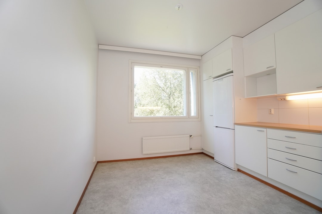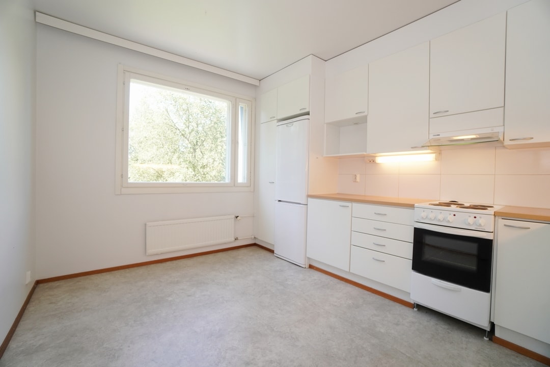 Siistikuntoinen koti reilun kokoisilla huoneilla ja isolla keittiöllä. Asunnon olohuone on sekin tilava ja yhteydessä on lasitettu parveke puistoisilla näkymillä. Makuuhuoneeseen saa parisängyn ja iso vaatehuone tuo mainiosti säilytystilaa. Keittiössä on runsaasti kaapistoja ja hyväkuntoiset kodinkoneet. Kylpyhuoneessa on liitännät pyykinpesukoneelle.
