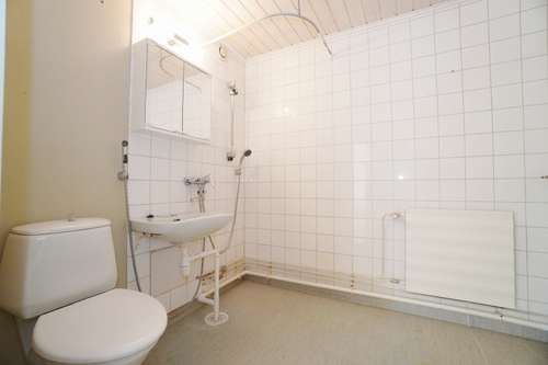 muovimatto; laattaseinä, allaskaappi, suihku, pesukonevalmius