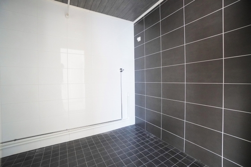 laattalattia; laattaseinä, allaskaappi; peilikaappi, suihku, pesukonevalmius
